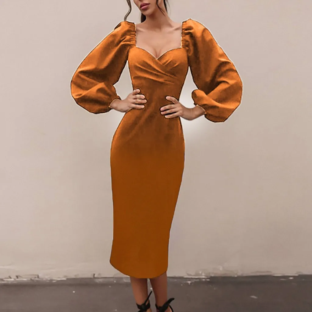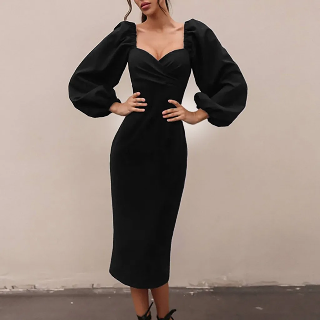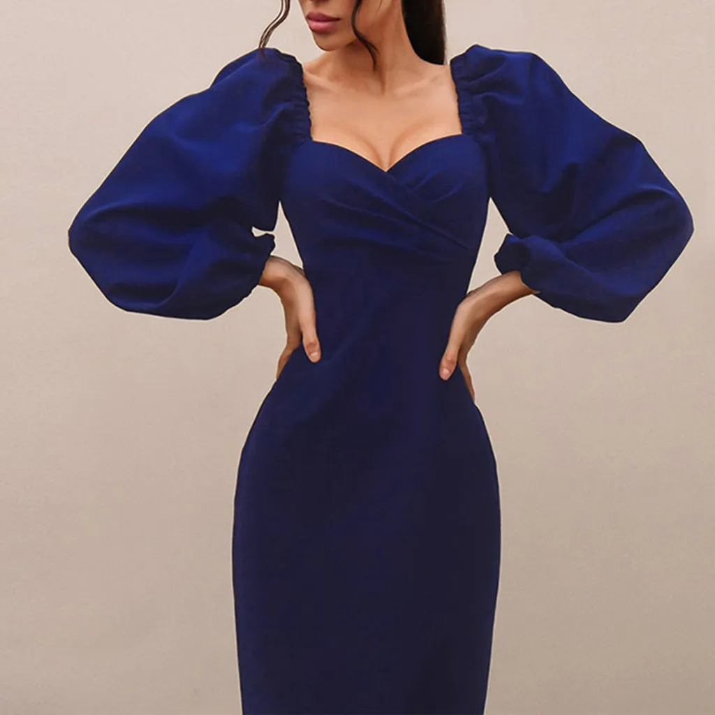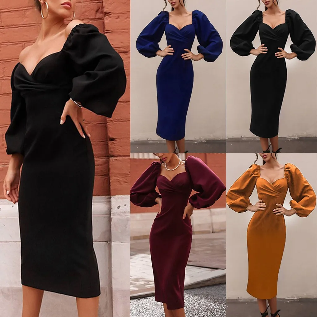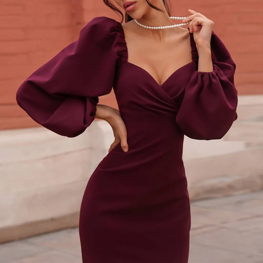 Женское сексуальное платье с v-образным вырезом, рукав-пузырь, модное однотонное сексуальное платье