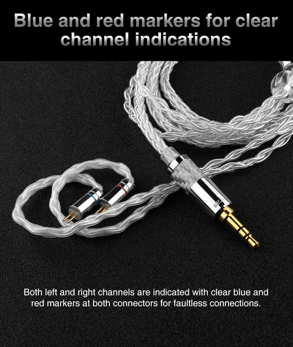 Лампа указателя T3 8 ядро из чистого серебра кабель 2,5/3,5 мм с MMCX/2PIN разъем Модернизированный кабель для лампа указателя V90 V80 KZZS10 AS10 CCA C16 BLON BL-03