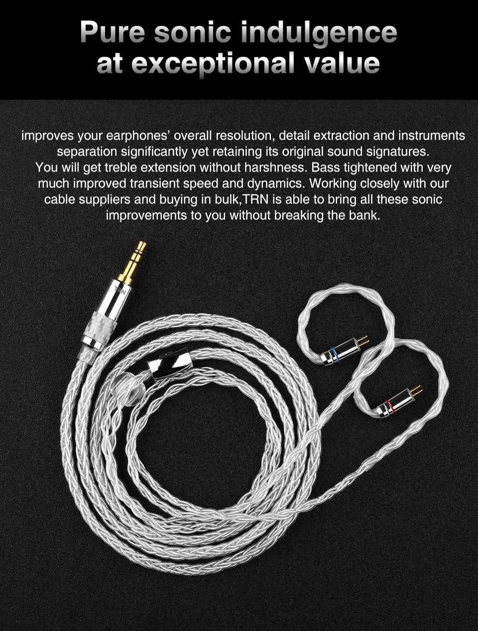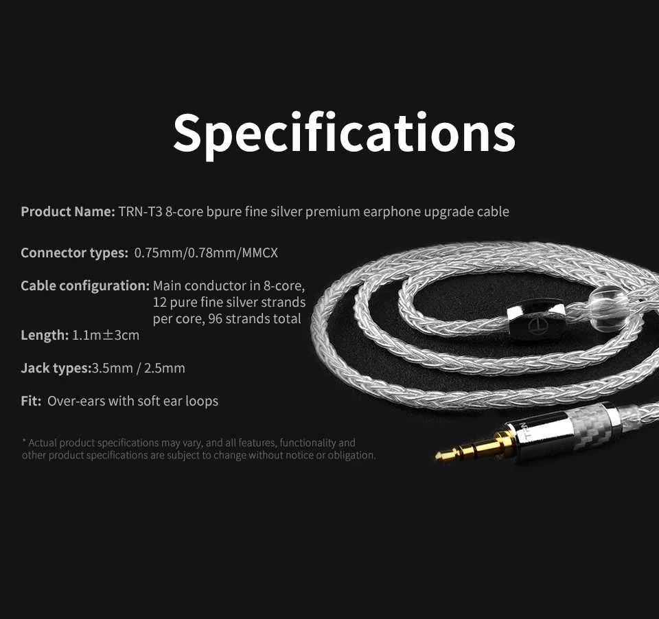 11 .. В комплект входит: кабель для наушников TRN T3 * 1 шт. (наушники и чехол в комплект не входят)