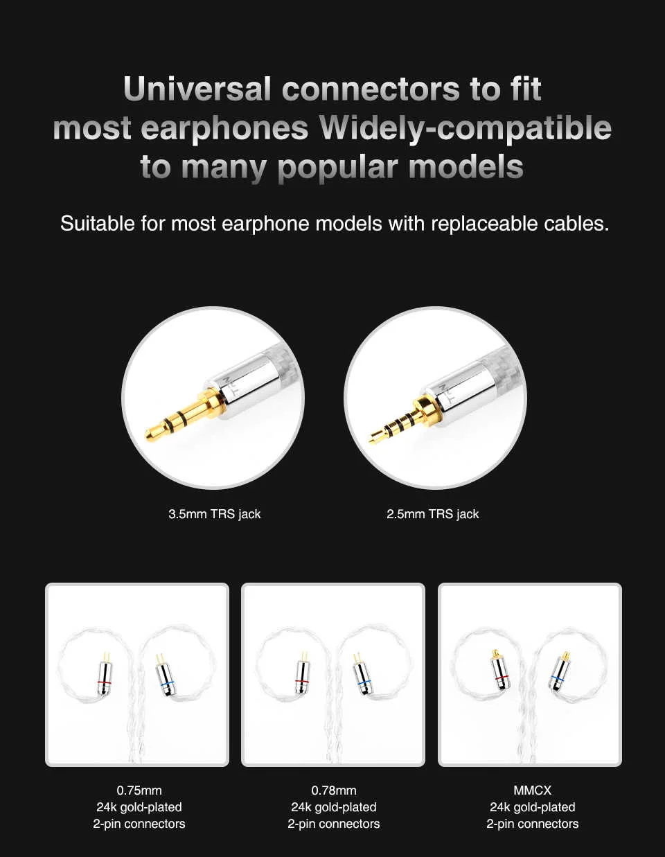 9. Интерфейс: MMCX/2PIN (0,75 мм и 0,78 мм)