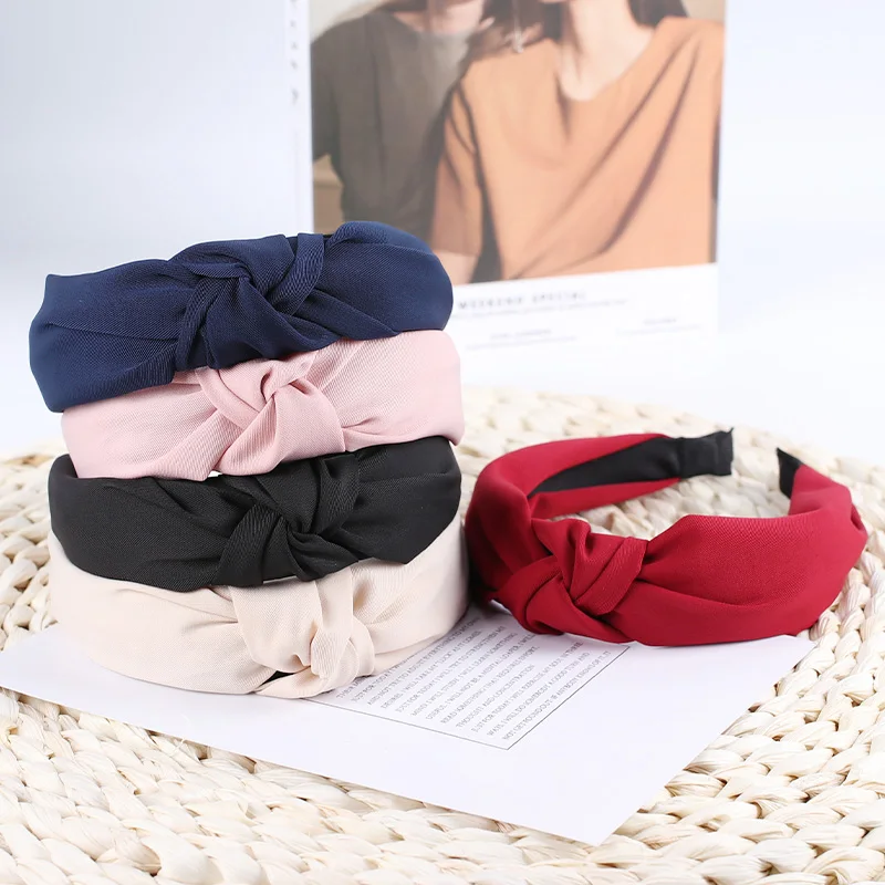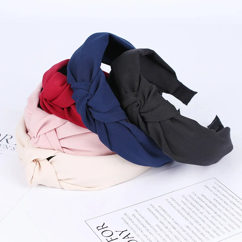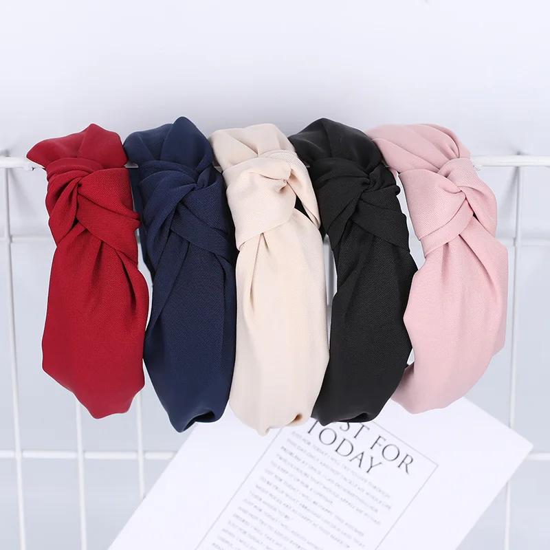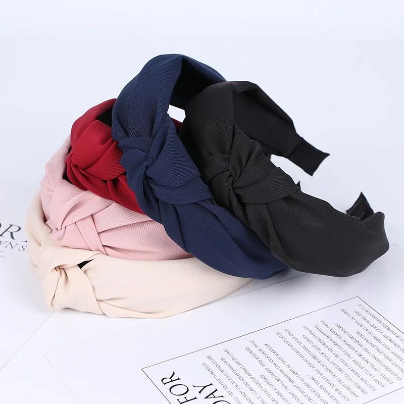 Xugar Модные Женские однотонные повязки для волос с узлом, простые тканевые повязки для волос для девочек, широкие обручи для волос, женские аксессуары для волос