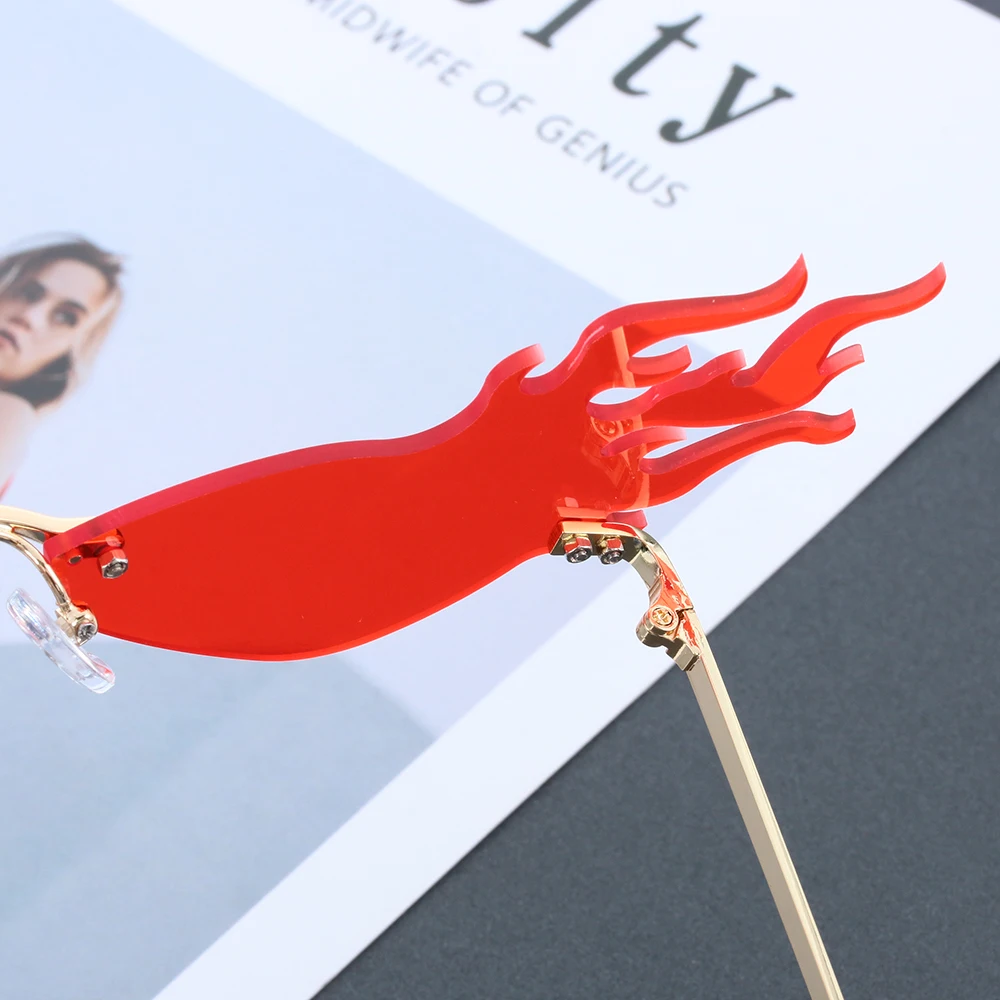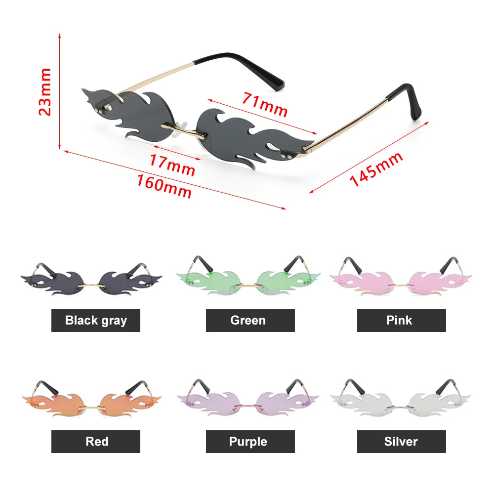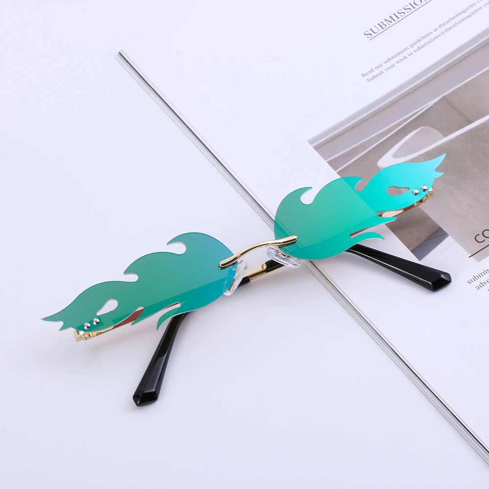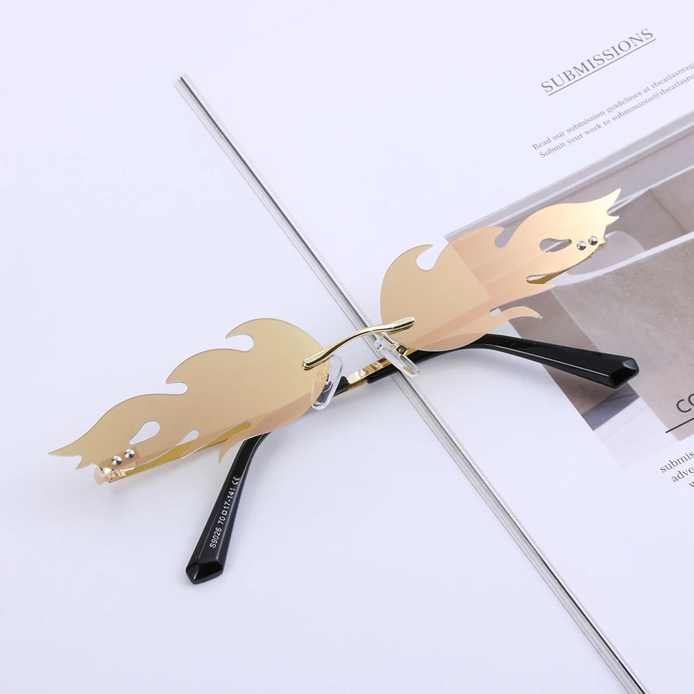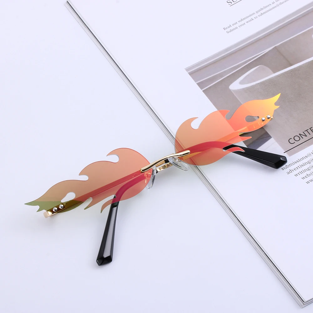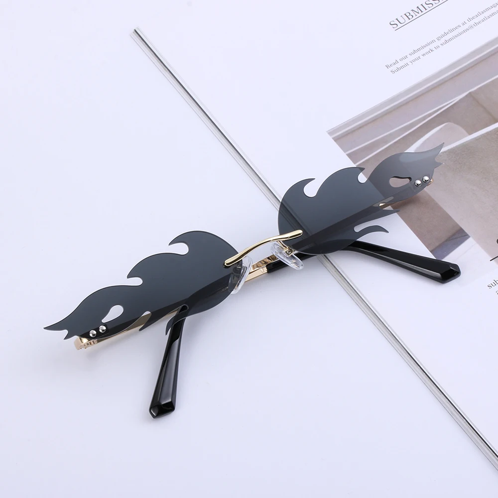 Новые огненные солнечные очки без оправы, волнистые солнцезащитные очки UV 400, унисекс, узкие очки, роскошные трендовые уличные очки, аксессуары