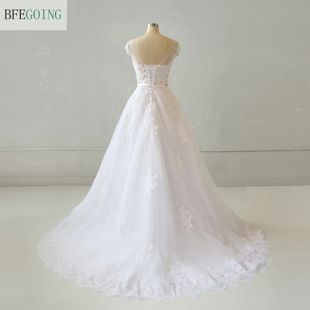Белое Кружевное Тюлевое платье с рукавами-крылышками длиной до пола, ТРАПЕЦИЕВИДНОЕ свадебное платье с длинным шлейфом, свадебное платье на заказ
