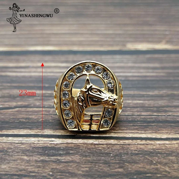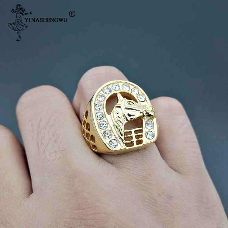 Кольцо в стиле хип-хоп из нержавеющей стали золотого цвета с головой лошади и цирконием, мужское кольцо, модные ювелирные изделия, высокое качество, продвижение, мужские кольца Anillo