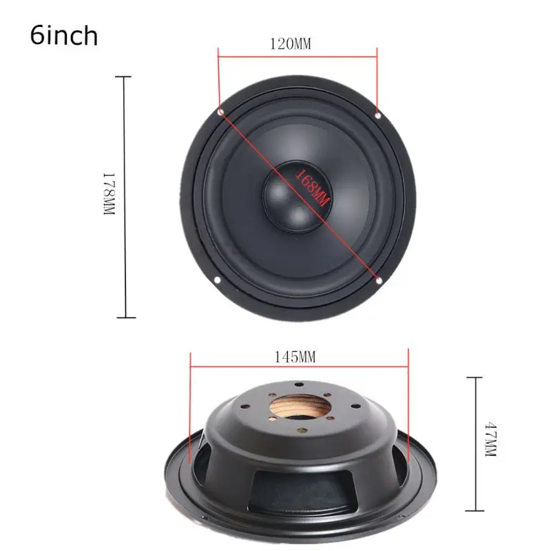 6,5 дюймов: Рог диаметр: 178 мм/7in, диагональ скручивания расстояние между отверстиями: 168 мм/6.6in, отверстия: 145 мм/5.7in, раззенковка глубина + Высота: 4 мм + 47 мм/0,15 + 1.8in