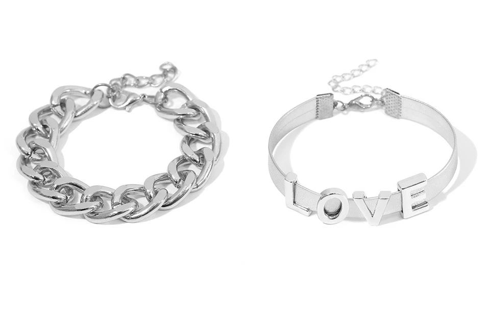 Набор женских браслетов цепочек из кубинской цепи в стиле хип хоп|Браслеты с