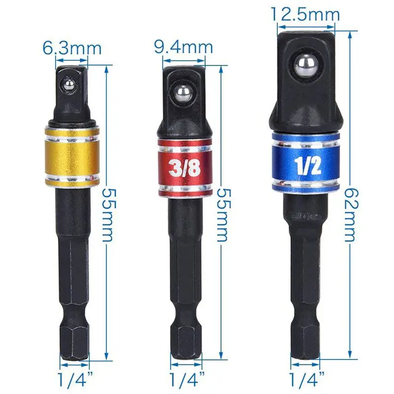 Новый комплект расширения гнезда удара превращает дрель в высокоскоростную гайку. 1/4 дюйма, 3/8 дюйма и 1/2 дюйма