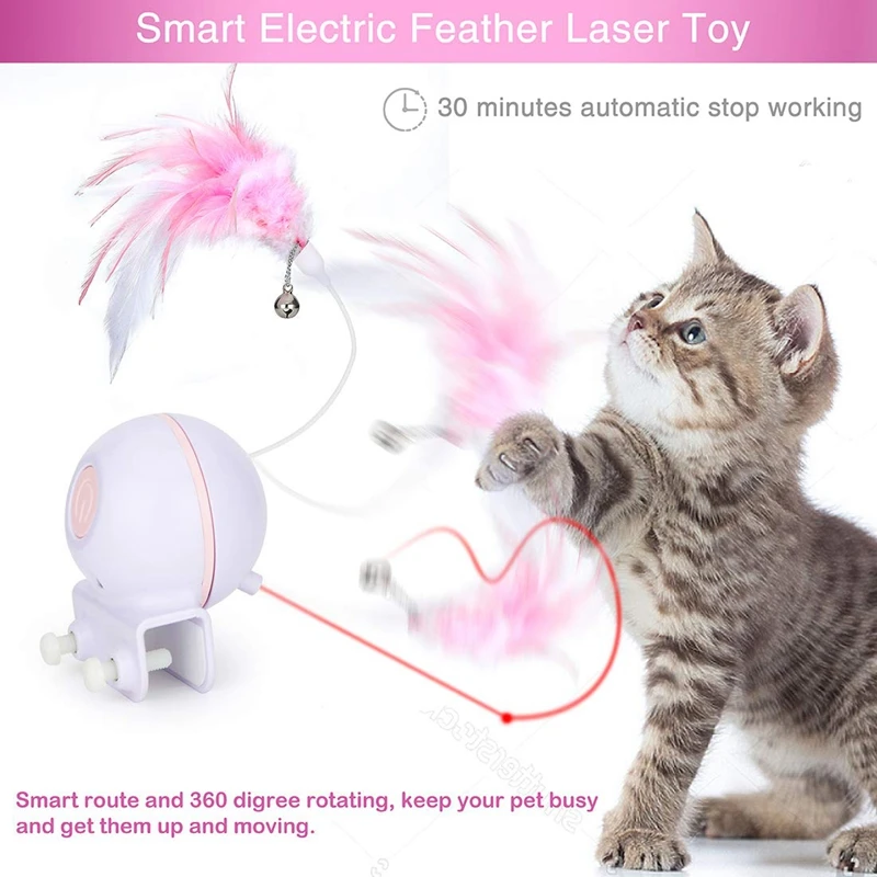 Игрушка для кошек 2 в 1 Автоматическая вращающаяся Стрелка Игрушка и интерактивная игрушка-перо с колокольчиком для кошачьего дерева, Электронная бесручная погоня Acti