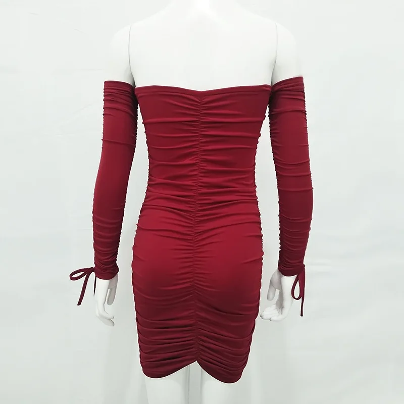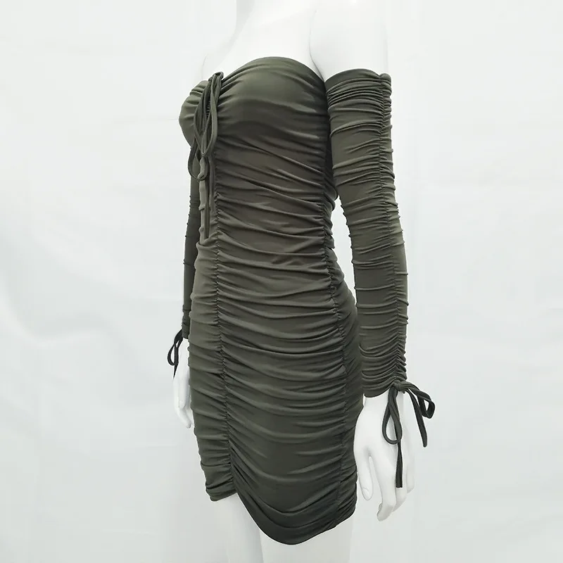 Женское облегающее платье с открытыми плечами длинным рукавом | Женская одежда