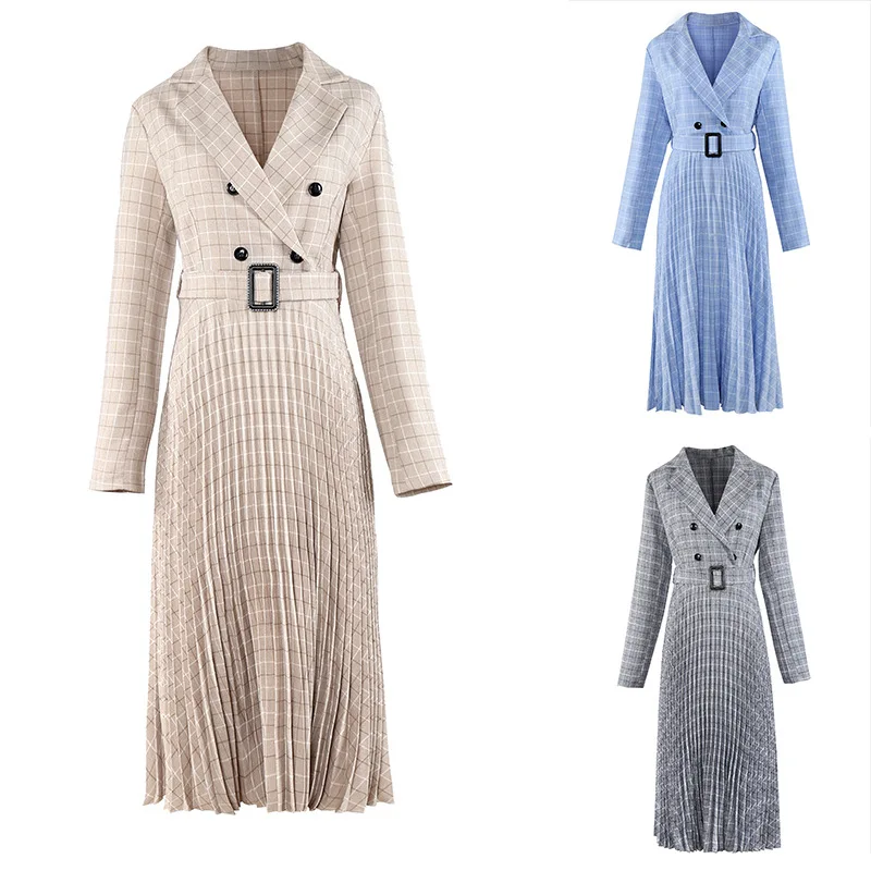Популярное винтажное плиссированное платье в клетку с поясом W