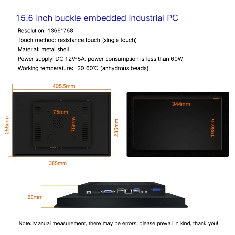 15,6 дюймов промышленный ПК Сопротивление сенсорный компьютер 1366*76816: 9