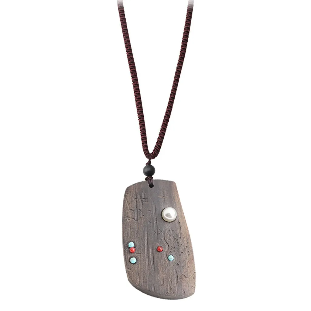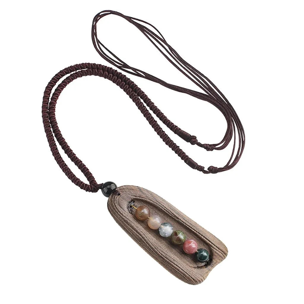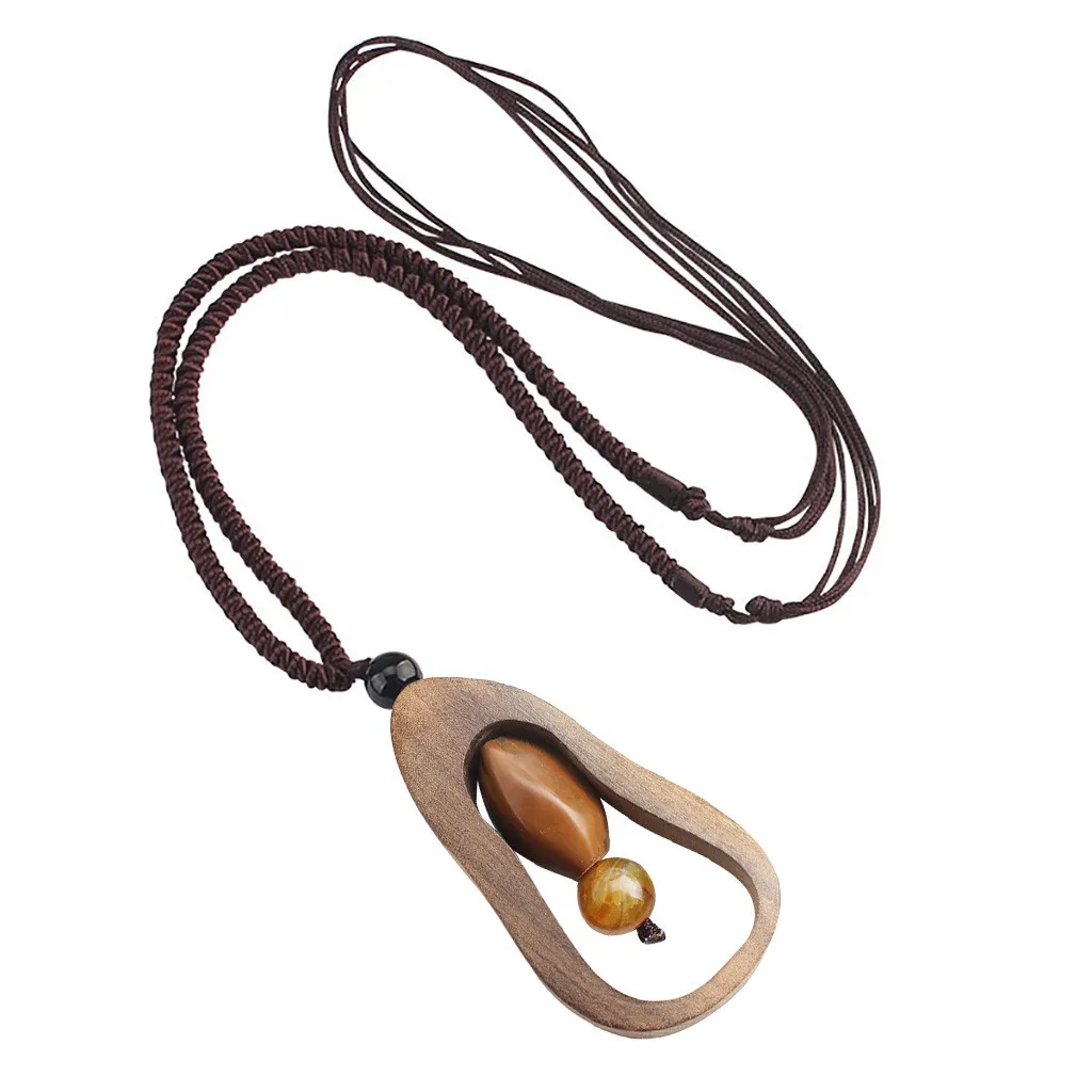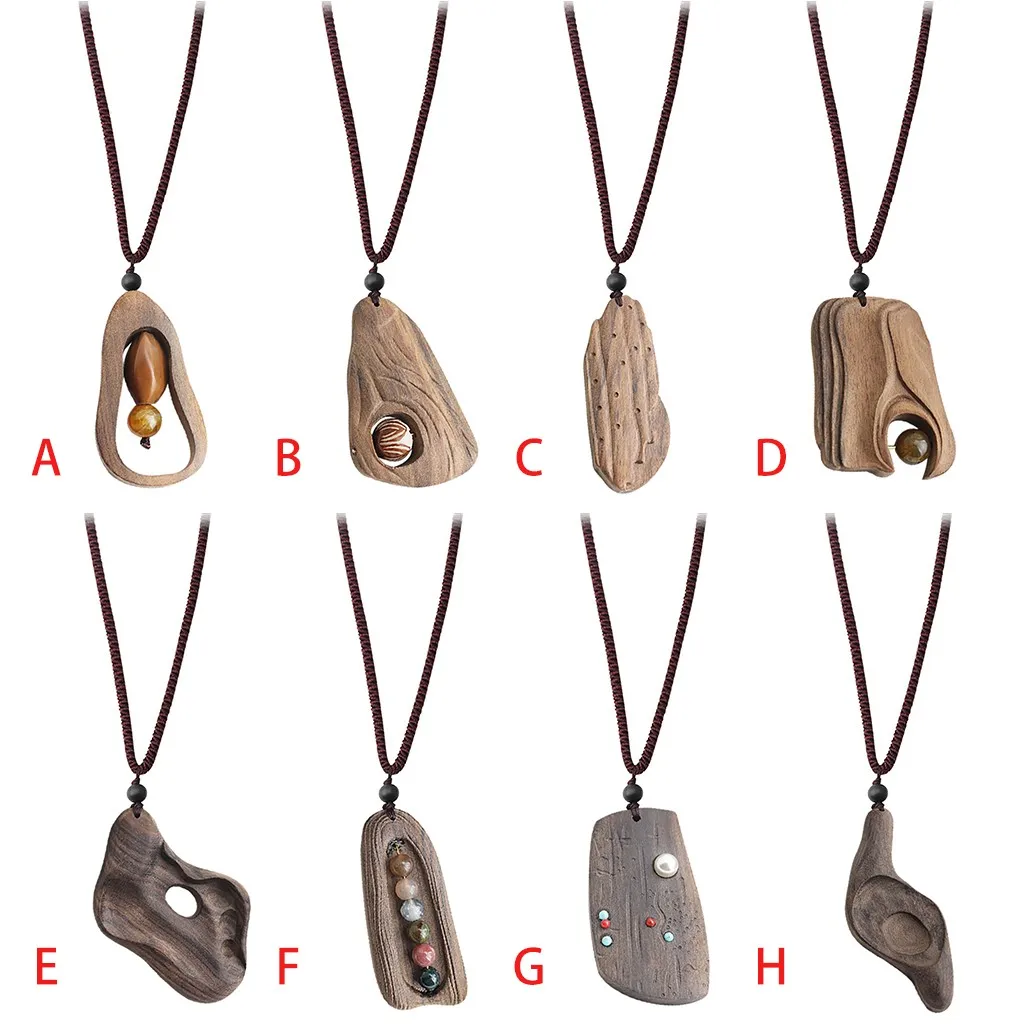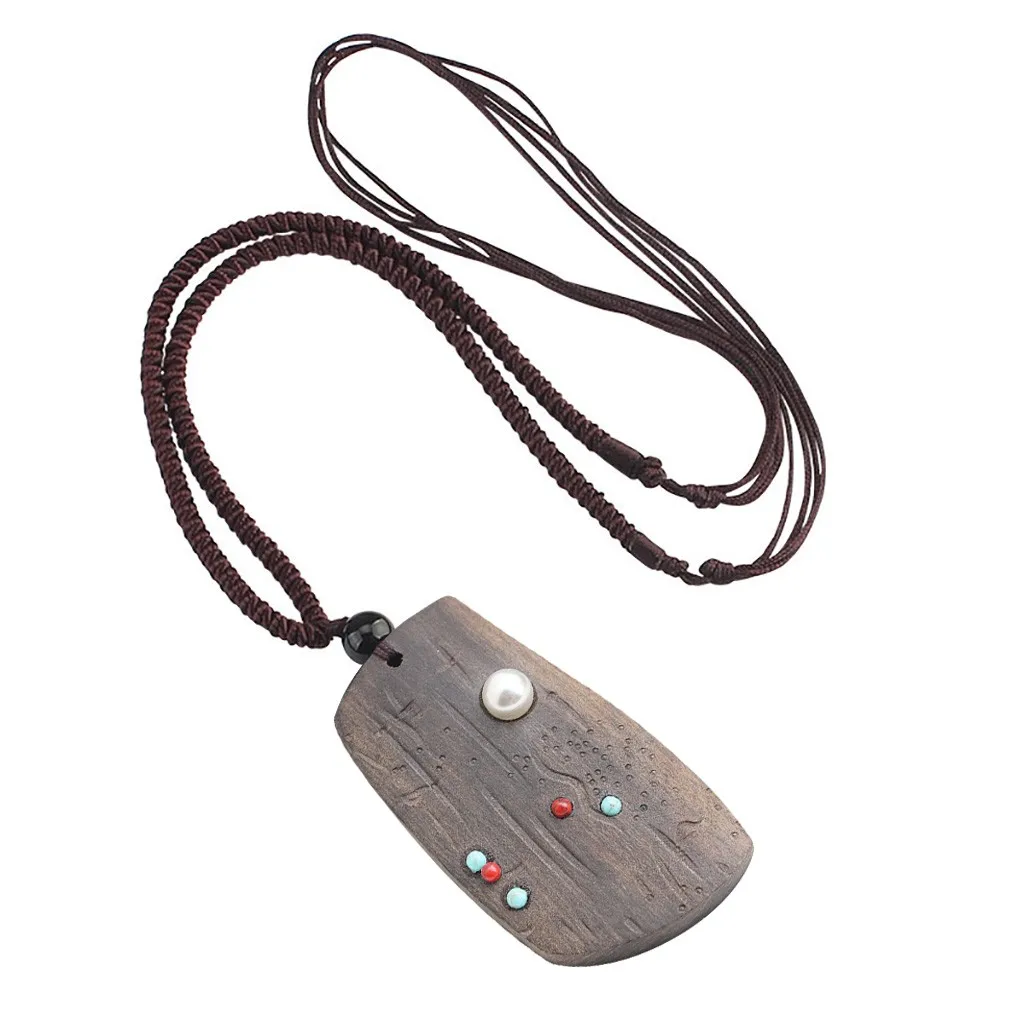 Ожерелье с подвеской из натурального сандалового дерева ручной работы Длинный регулируемый колье для свитера