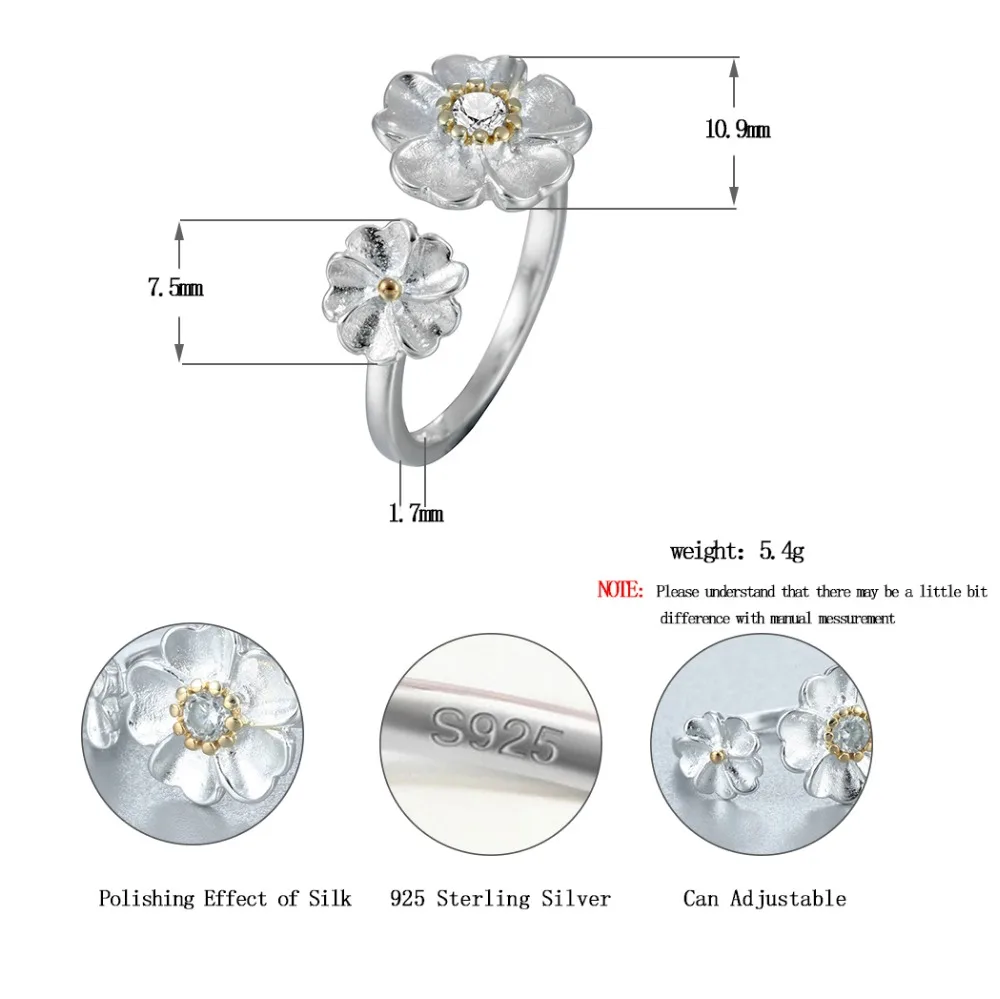 Кольцо из стерлингового серебра 925 пробы с ромашками на концах пальцев, с открытым носком, Брендовое цветочное украшение для женщин/девушек, подарки, модные ювелирные изделияUSD 3,39/Шт.