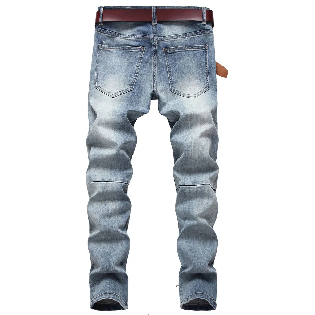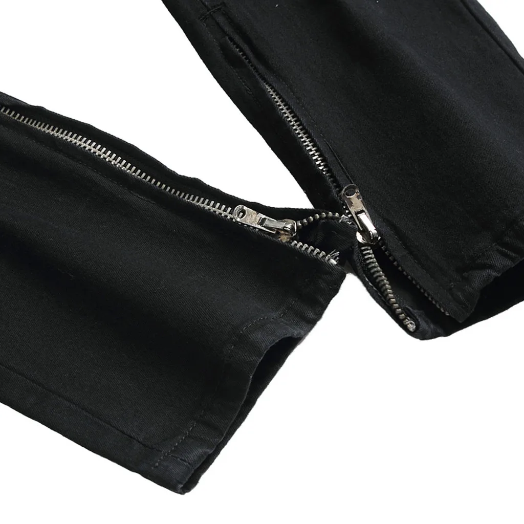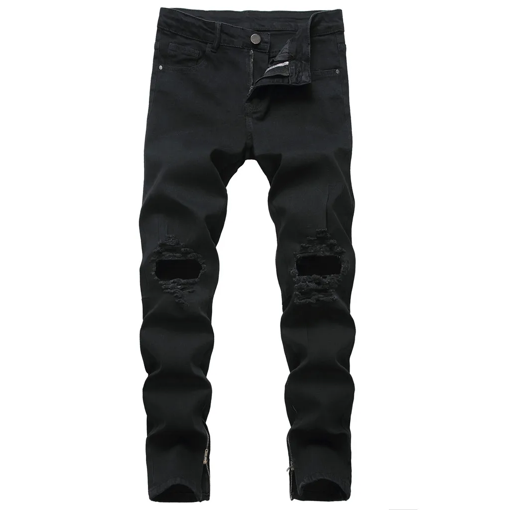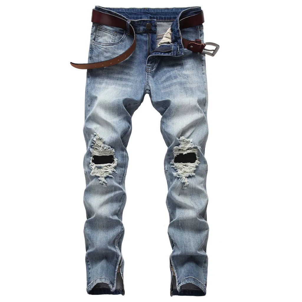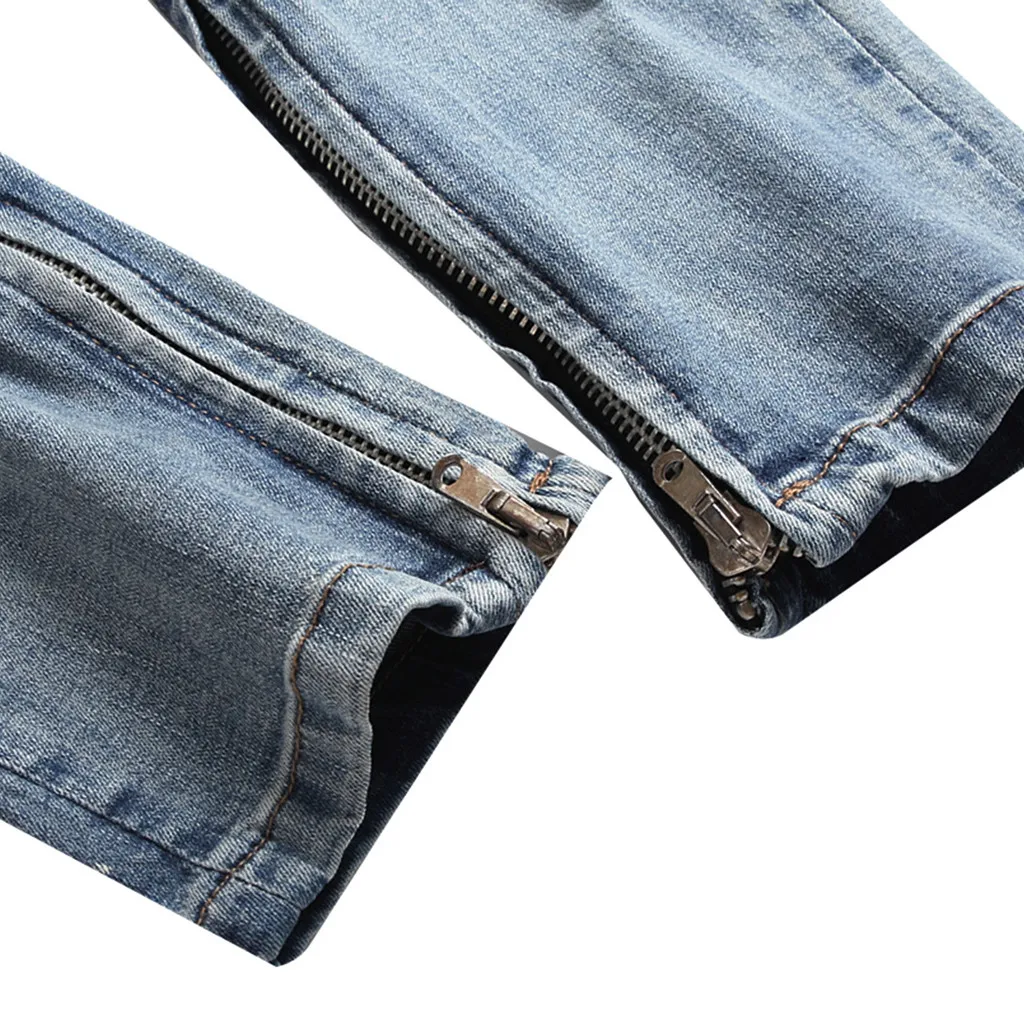 Мужская Новая мода личности рваные Slim Fit молнии стрейч джинсовые брюки