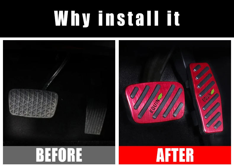 Item Specifics: Condition: New Color: as picture show Material: Aluminum alloy+Rubber Note:Please check whether the position of the accelerator and brake pedal of your car interior is the same as before the installation shown in our picture. If they are the same, you can use our products!
