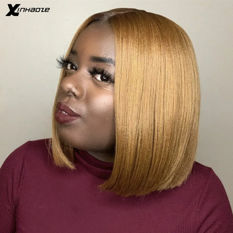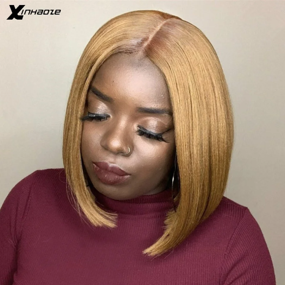 13X4 Мёд блондинка Синтетические волосы на кружеве парики из натуральных волос на кружевной основе #27 Цвет бразильский Волосы remy 13x6 глубокий часть синтетические волосы черные короткие боб парик отбеленные