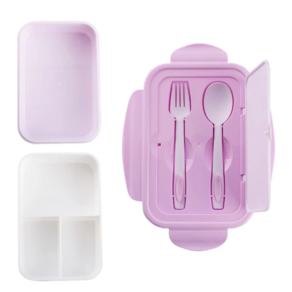 Lunch Box 1400ml Kids Bento Box with 3 Compartments and Cutlery (Fork and Spoon)