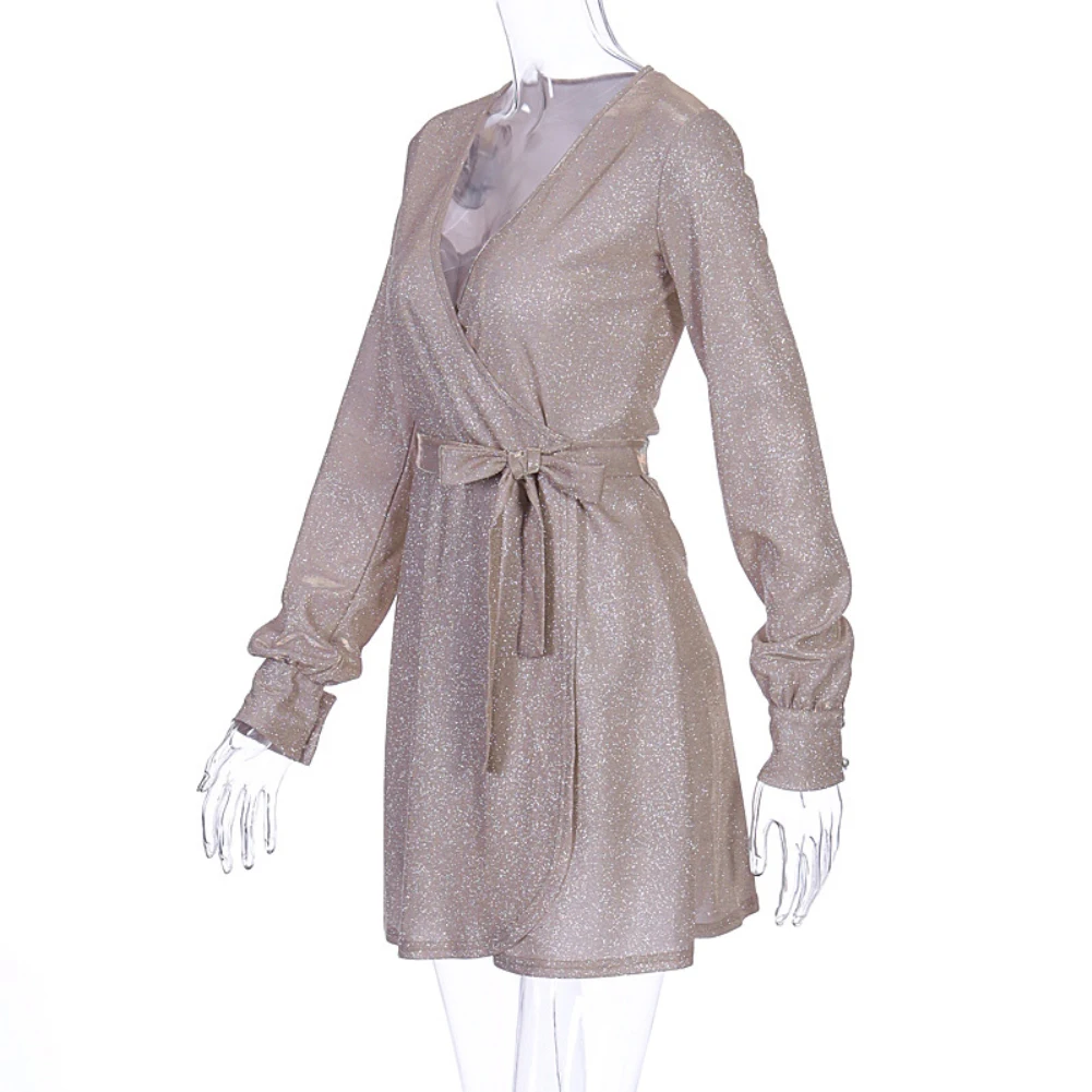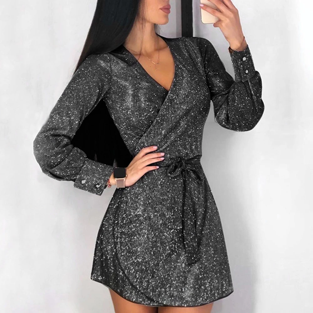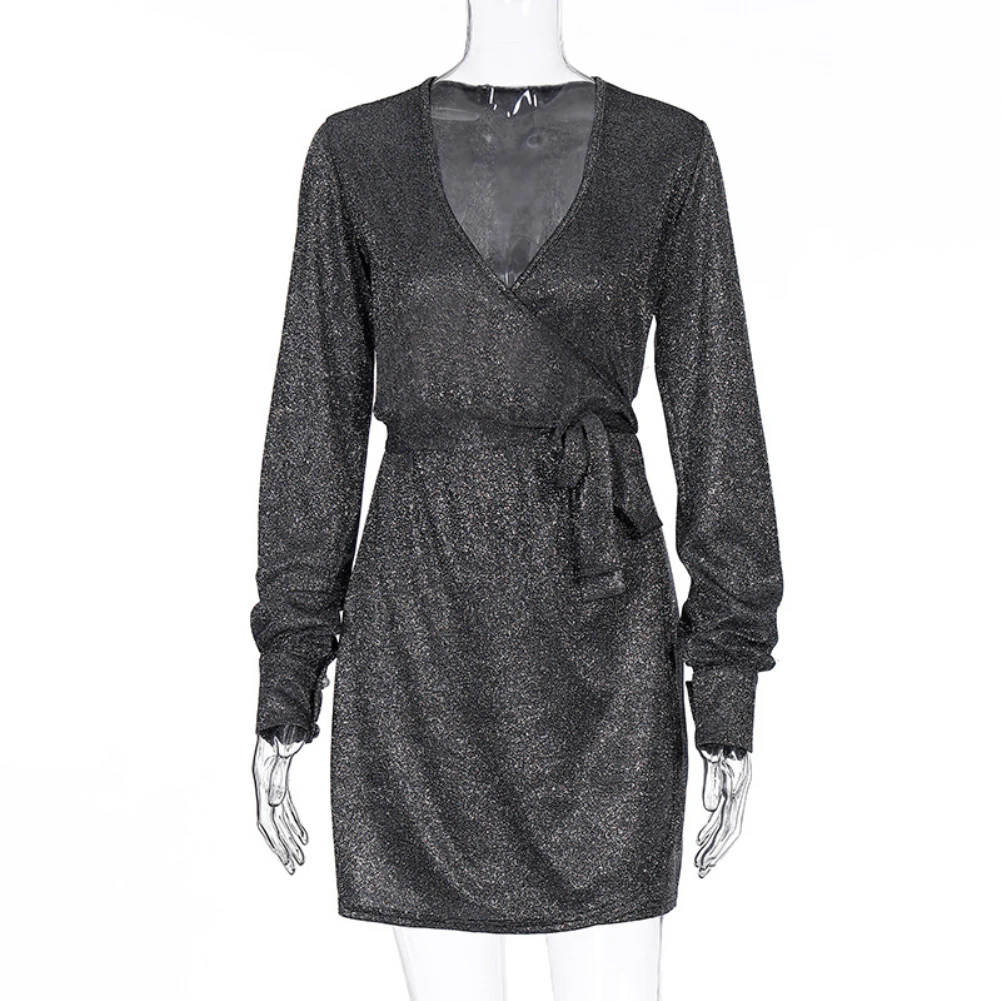 Сексуальное женское мини-платье с глубоким v-образным вырезом и длинным рукавом