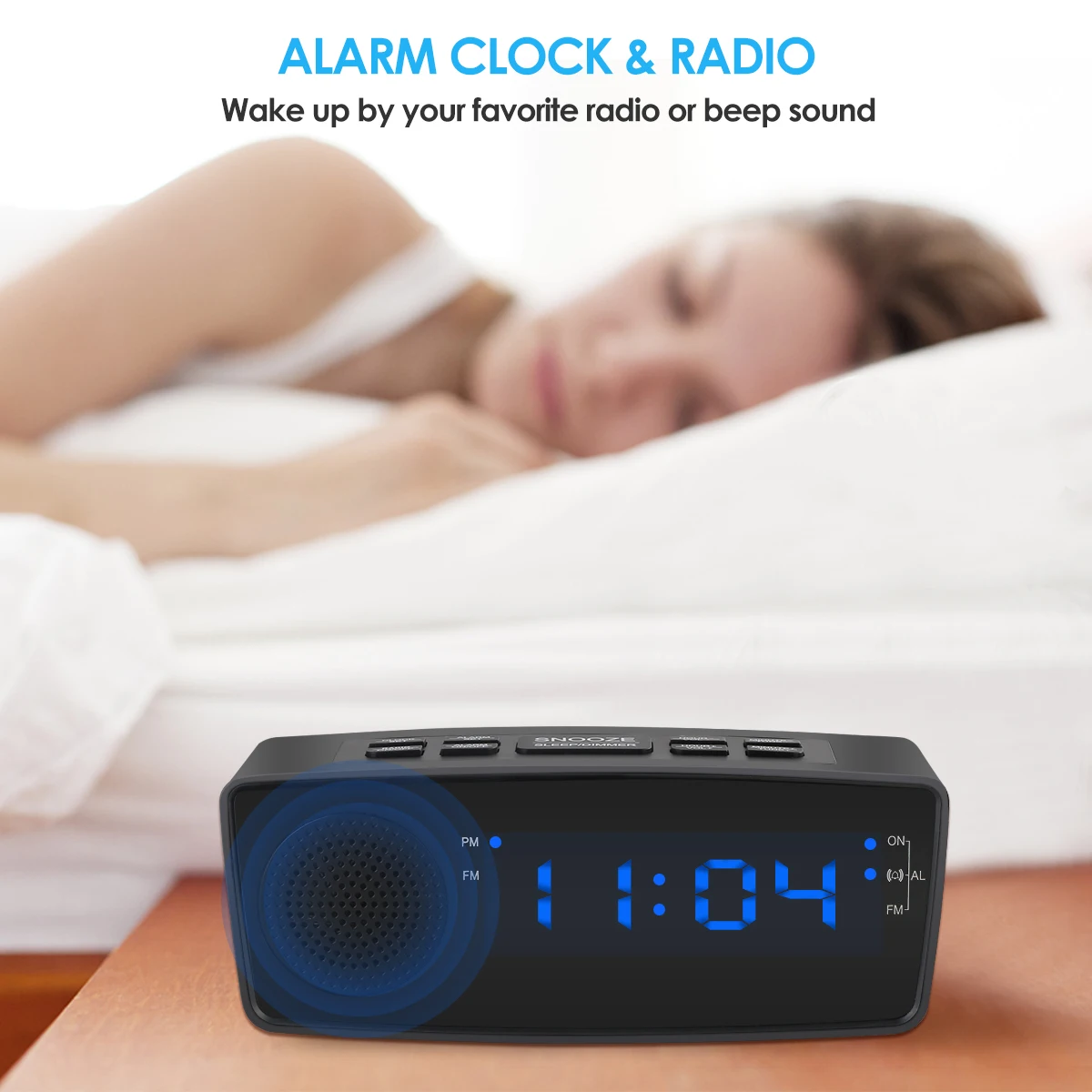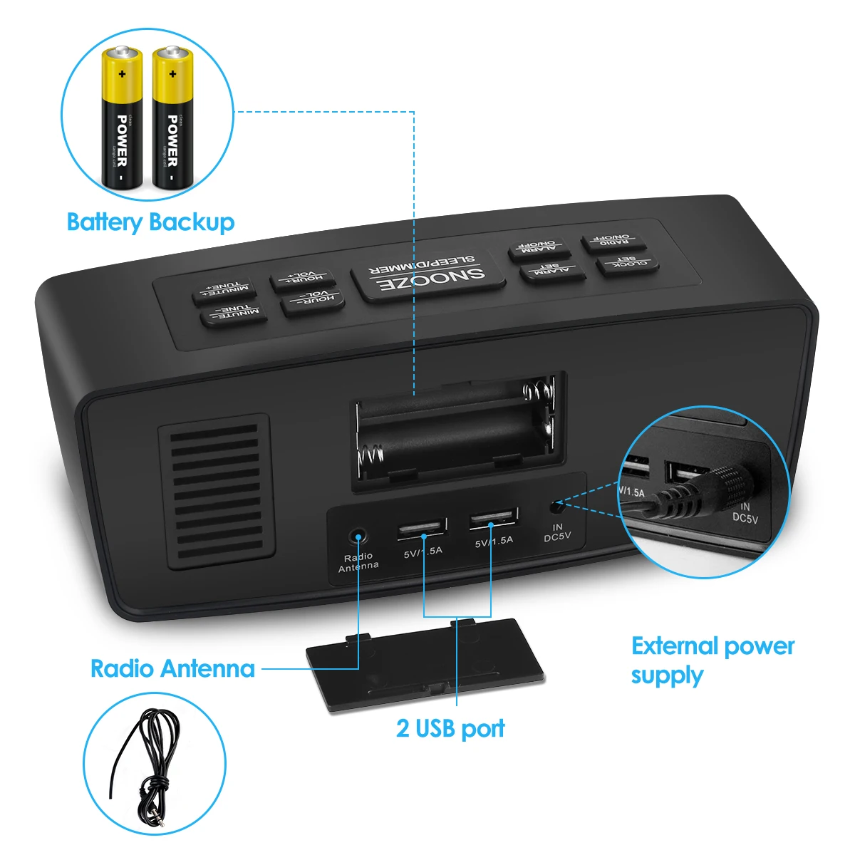 FM Будильник Радио с регулируемой яркостью светодиодный дисплей часы радио батарея резервного копирования с USB зарядным портом, таймер сна и режим повтора