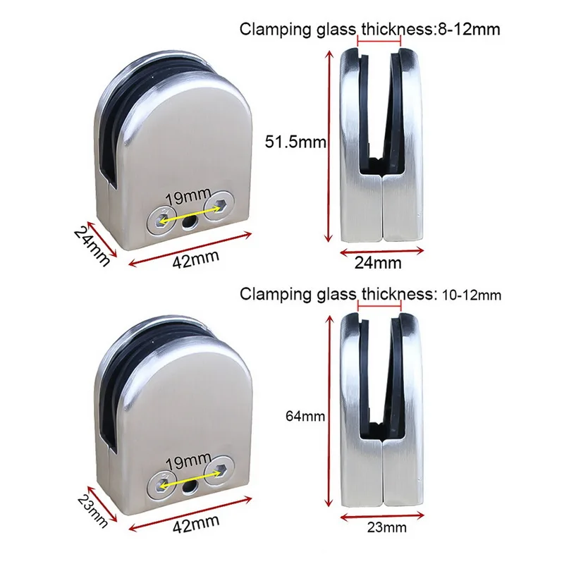 2Pcs Stainless Steel Glass Clips Adjustable Wall Mounted Shelf Clamp Bracket 6-8mm Holder With Screw | Обустройство дома