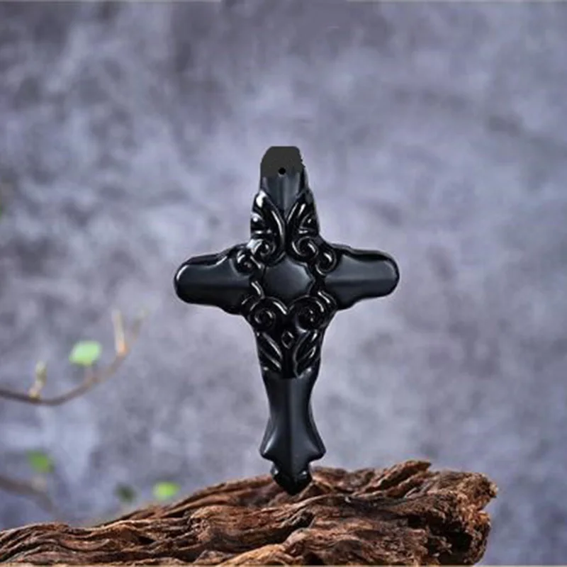 Название: натуральный обсидиановый крест, благоприятный амулет на удачуКулон + ожерелье из бисера