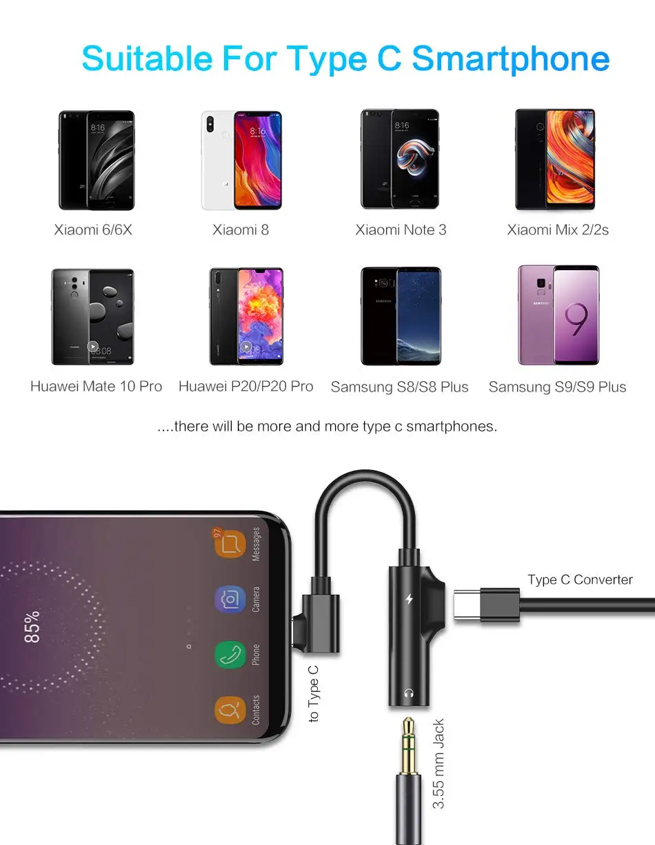 Примечание: Этот адаптер не подходит для samsung Galaxy NOTE 10 и samsung Galaxy Note 10 + Этот продукт поддерживает телефон + регулятор громкости все C-type (USBC) аудио зарядное устройство адаптер, не для наушников 3,5 мм разъем телефона Поддерживаются только разъемы для наушников типа C, и нет отверстия 3,5 мм для телефона. Пожалуйста, убедитесь, что ваш телефон подходит для нашего адаптера. USB-C: дизайн разъема type-C, совместим с samsung, Google, Google Chromebook, HUAWEI, htc, Motorola Moto, Essential, LeEco, Nexus, Nokia, LG, OnePlus, xiaomi и другие устройства типа c. Черный sharp; Тип: аудиоадаптер с разъемом типа C на 3,5 мм. цвет: красный, розовое золото, золото, серебро, черный (опционально). разъем a: гнездо 3,5 мм. разъем b: USB 3,1 type C папа. разъем C: USB 3,1 type C Female. Адаптер для наушников 2 в 1 типа c до 3,5 мм поддерживает одновременную зарядку и аудиовыход. Используйте этот адаптер, вы можете заряжать телефон и слушать музыку одновременно. Адаптер настолько маленький, что не занимает места и удобно носить с собой. Удобно подключать наушники 3,5 мм к USB-C устройствам. Этот продукт позволяет одновременно использовать сплиттер для наушников и зарядки устройства.