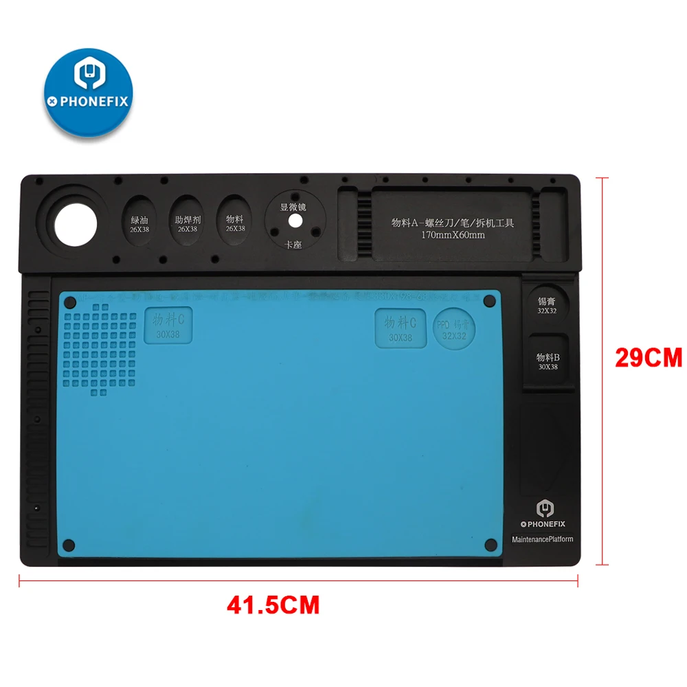 Введение:Высокотемпературная подкладка из алюминиевого сплава для ремонта телефонаМногофункциональная подкладка из алюминиевого сплава и усовершенствованная высокотемпературная подушка для ремонта на мобильный телефон41,5 см * 29 см подкладка из алюминиевого сплава, (без каких-либо инструментов, только подкладка из алюминиевого сплава)Цвет: черный, красный, синий, розовый, золотойМы вышлем случайный цвет, если вам не нужен цвет на складе!