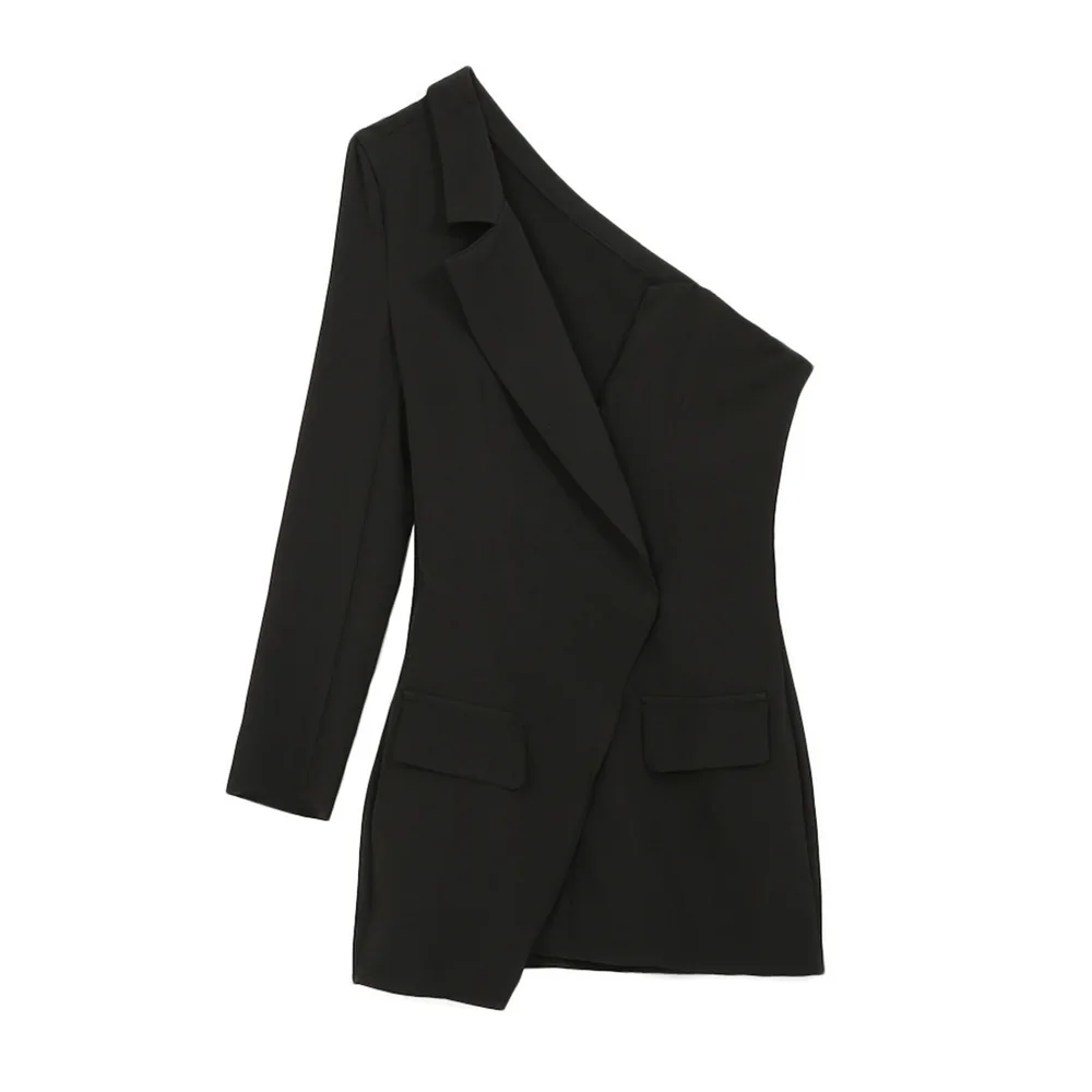 Женский костюм на одно плечо TITAME, сексуальное платье-блейзер с открытой спиной и глубоким v-образным вырезом на молнии, модные вечерние мини-платья с запахом для клуба