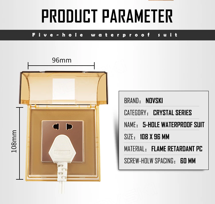 Новый материал и модный внешний вид Водонепроницаемый дизайн, идеально подходит для использования в ванной и кухне Подходит для 86 розетка настенного типа Совместимость для дома, офиса, ресторана, больниц, школы и т. Д. Цвет: прозрачный золотой, прозрачный синий, прозрачный черный, прозрачный белый Материал: прозрачный Поликарбонат Размеры: 108 мм * 96 мм * 45 мм Посылка включает в себя: 1 х настенная розетка, водонепроницаемая коробка 1 x Губка мат Примечание: Светильник съемки и различные дисплеи могут привести к тому, что цвет товара на фотографии может немного отличаться от реального объекта. Допускается замер +/- 1-3 см.