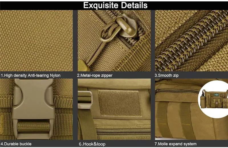 Material: Waterproof Nylon Lining: Polyester Color: Black, khaki, ACU Digital, CP camouflage Size: 24 cmX 35 cmX 11-14 cm (HXLXW)