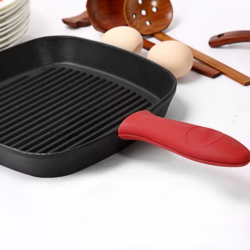 2. Дизайн: держатель ручки специально разработан повышенной нескользящей текстурой на ручке для большей безопасности при перемещении тяжелых горячих сковородок, безопасно уменьшает передачу тепла.