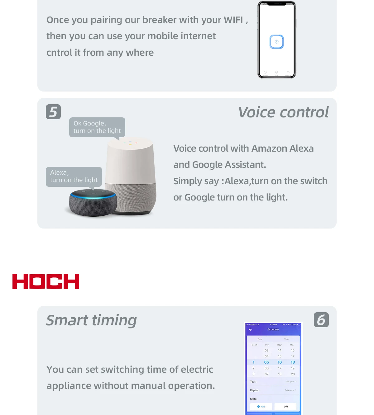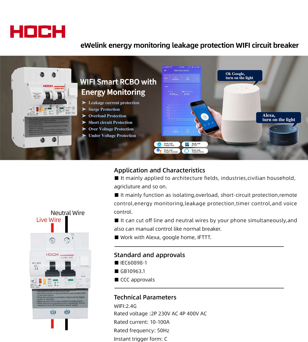 1.Глобальное управление, Scedule/Loop timer/timer, голосовое управление, функция мониторинга энергии, функция защиты от утечки. Функция Rs485/Modbus, защита от перегрузки, защита от короткого замыкания, защита от перегрузки по току, защита от перенапряжения, работа с Alexa, google home, IFTTT.