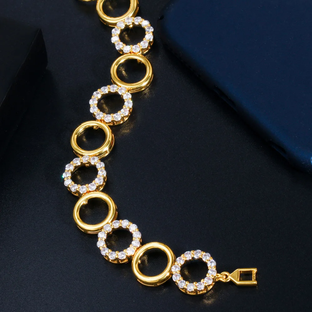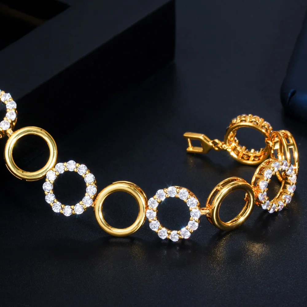 ThreeGraces, регулируемый круглый круг, кубический цирконий, элегантный, желтое золото, для звавечерние ужина, теннисные браслеты, браслет для женщин BR111