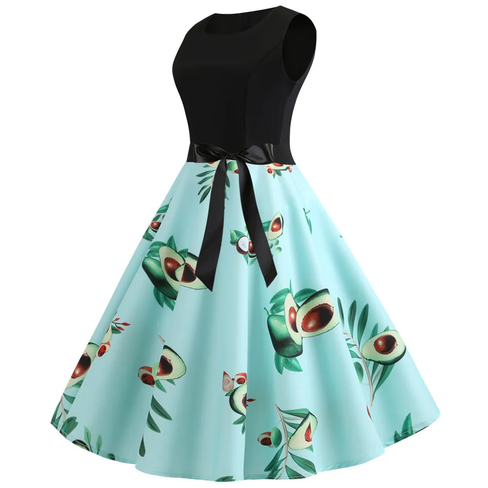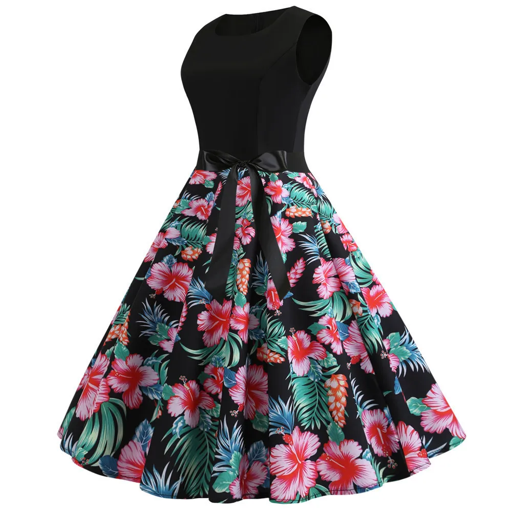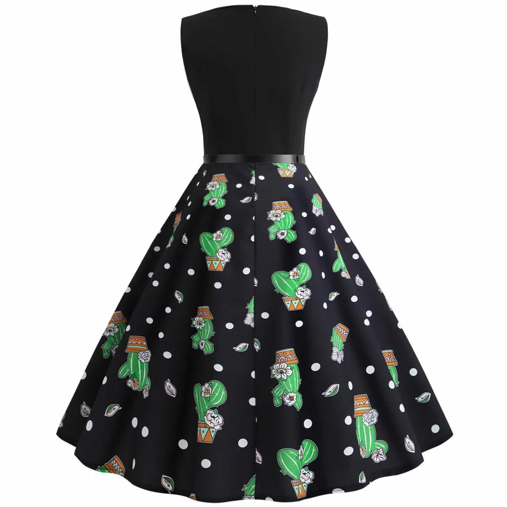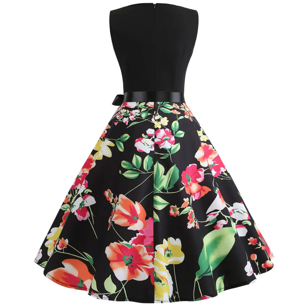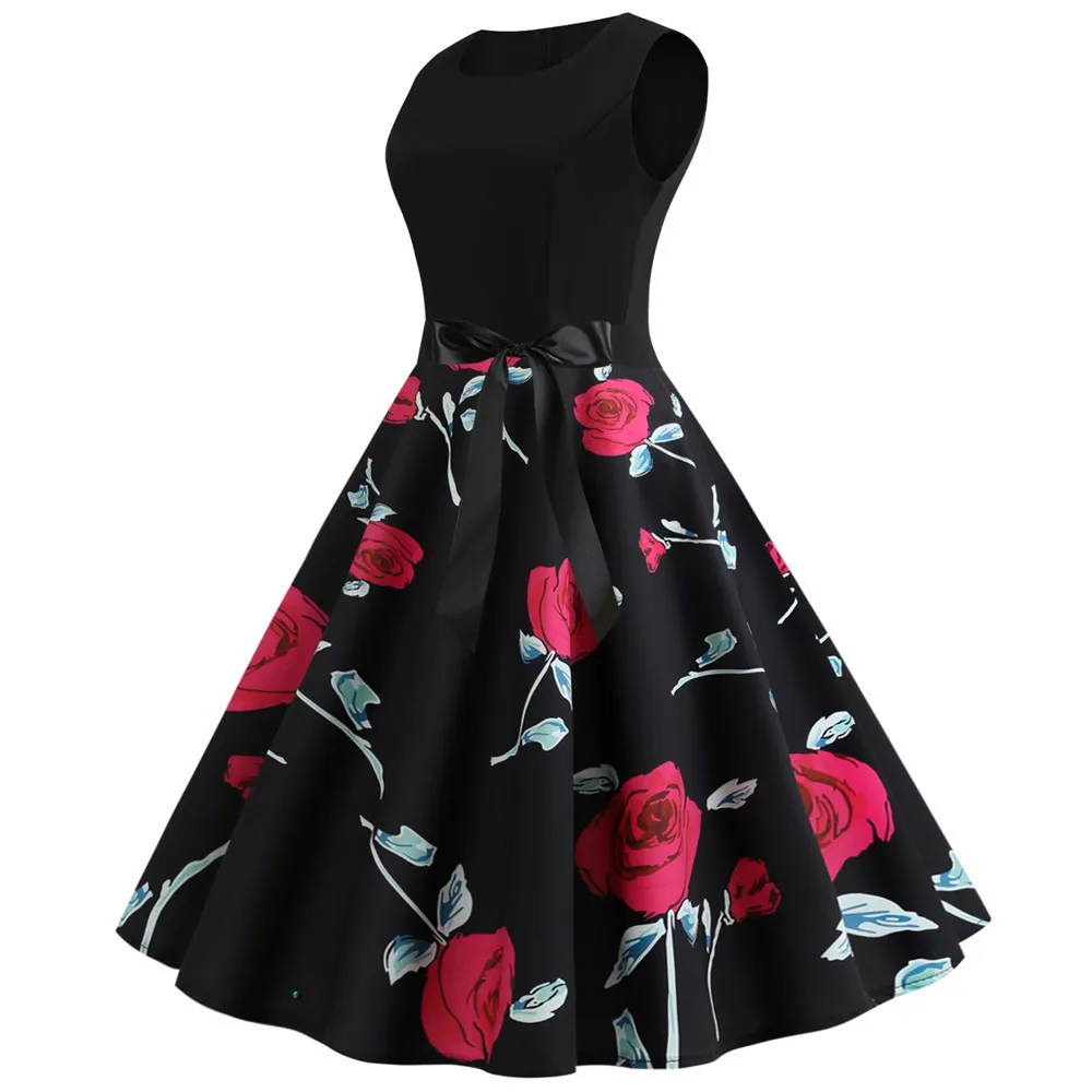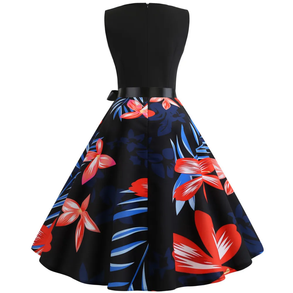TITAME Women Vintage Dress Sleeveless Valentine Dress Big Swing Elegant Print Dress Party Dresses Women Dress Robe Plus Size