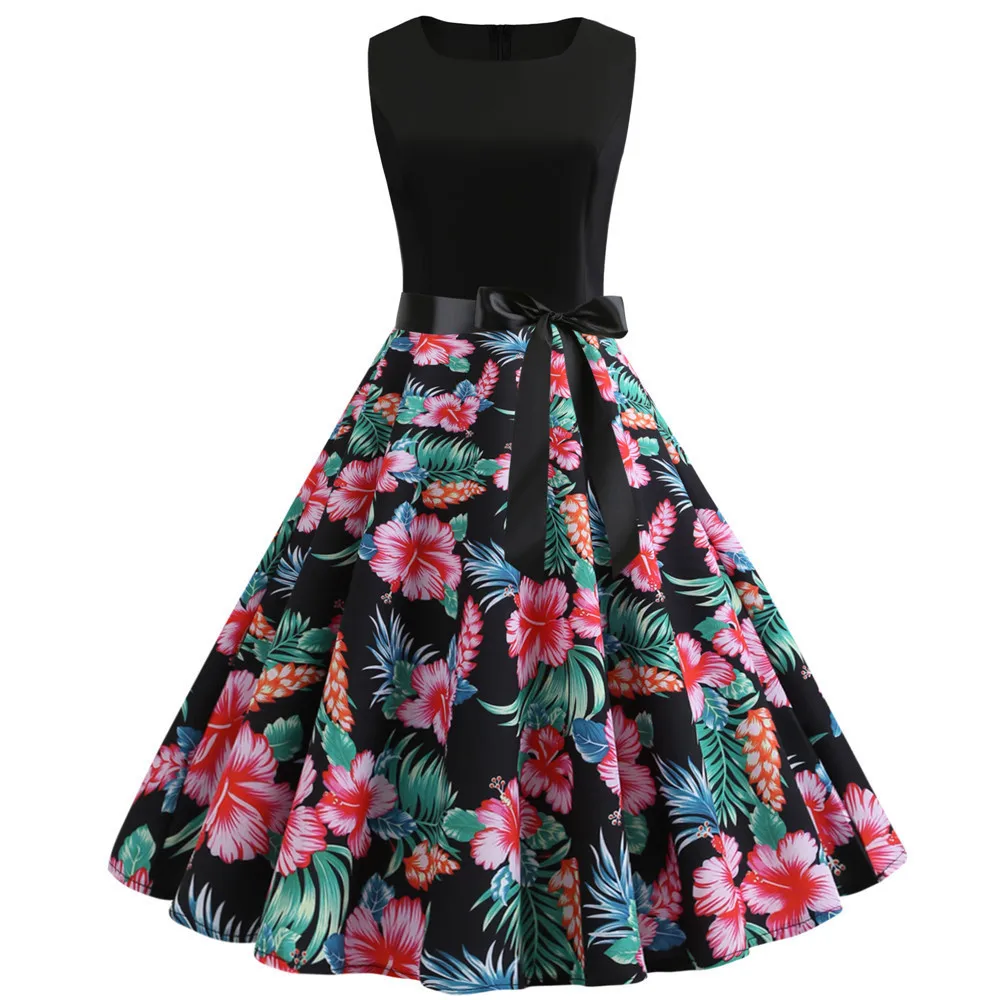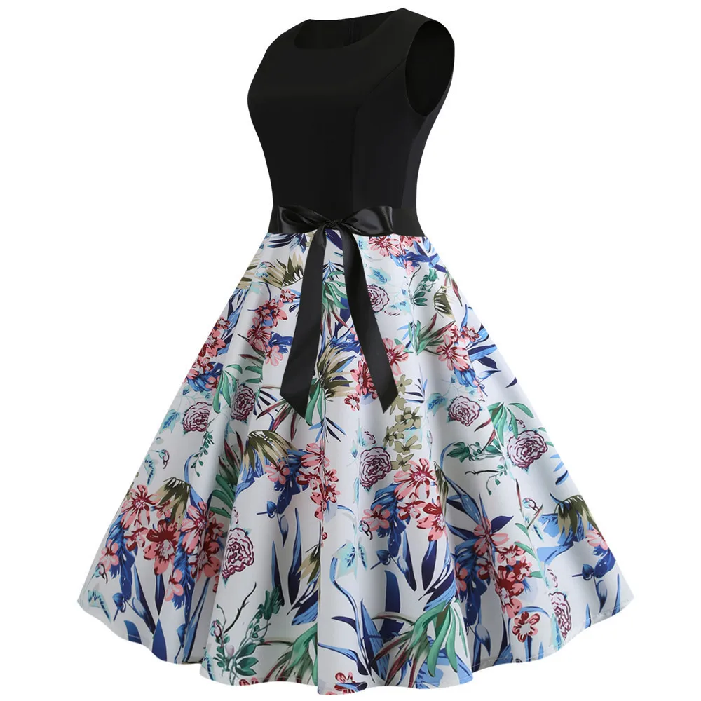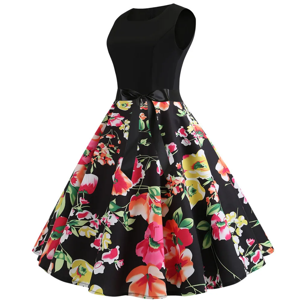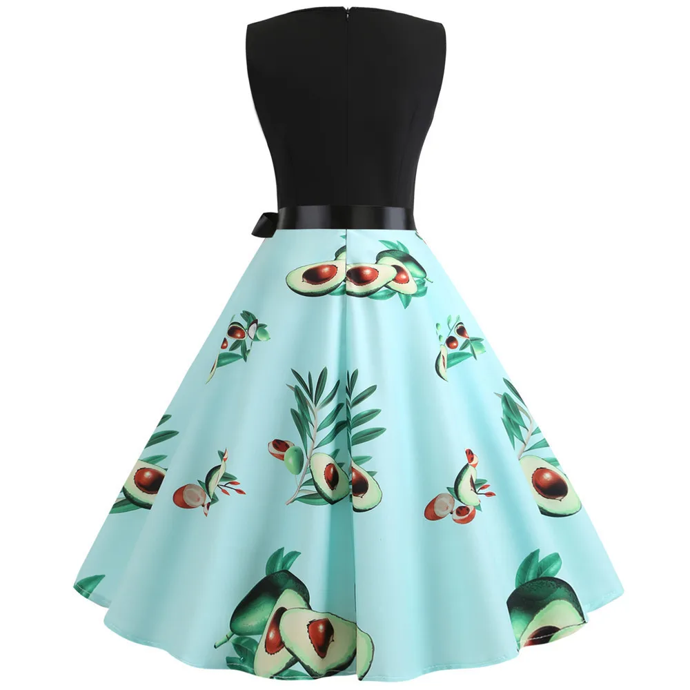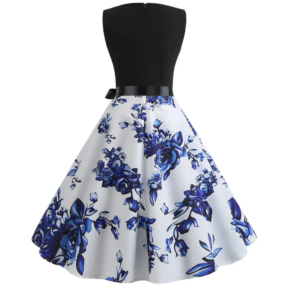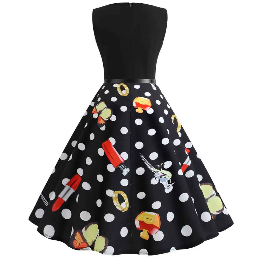 TITAME Women Vintage Dress Sleeveless Valentine Dress Big Swing Elegant Print Dress Party Dresses Women Dress Robe Plus Size