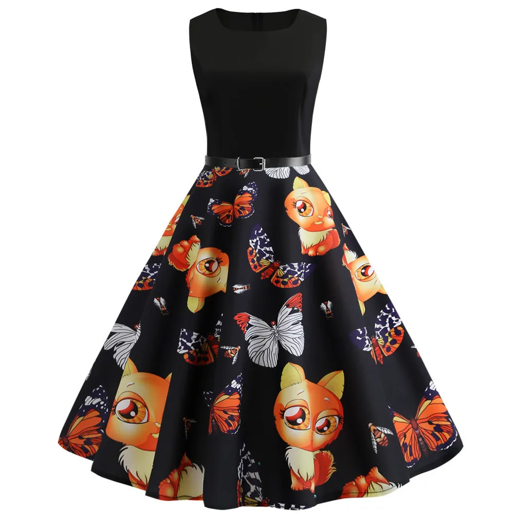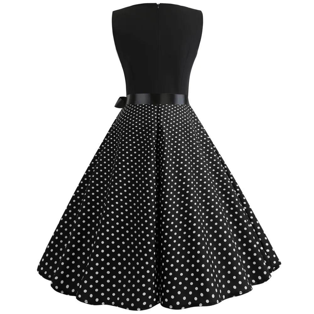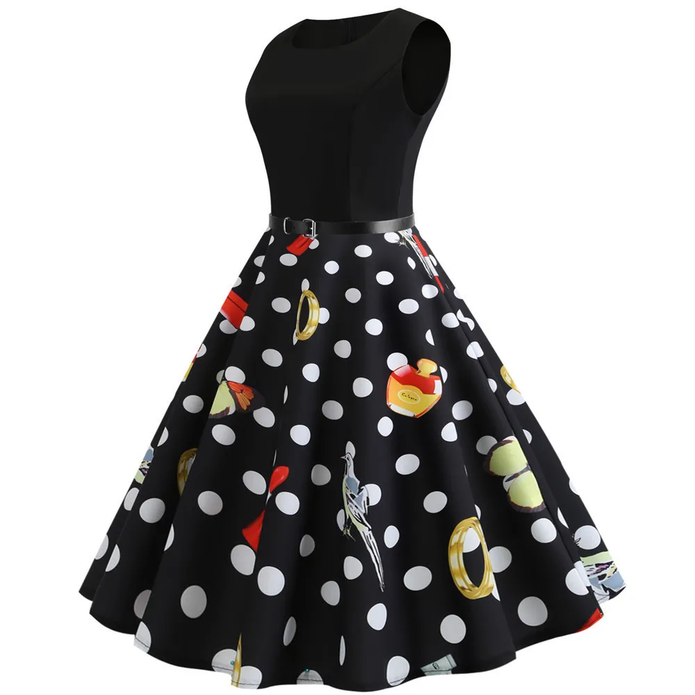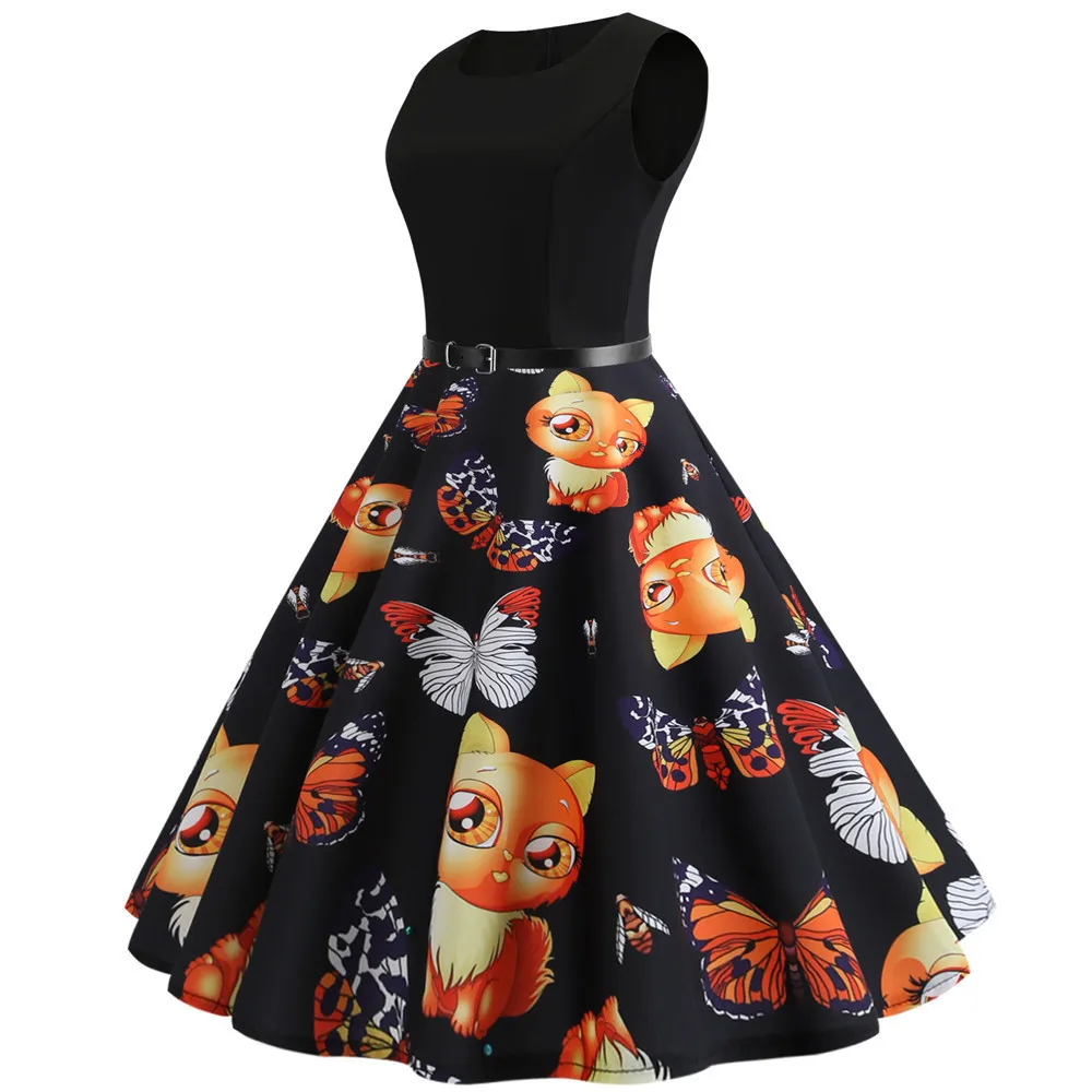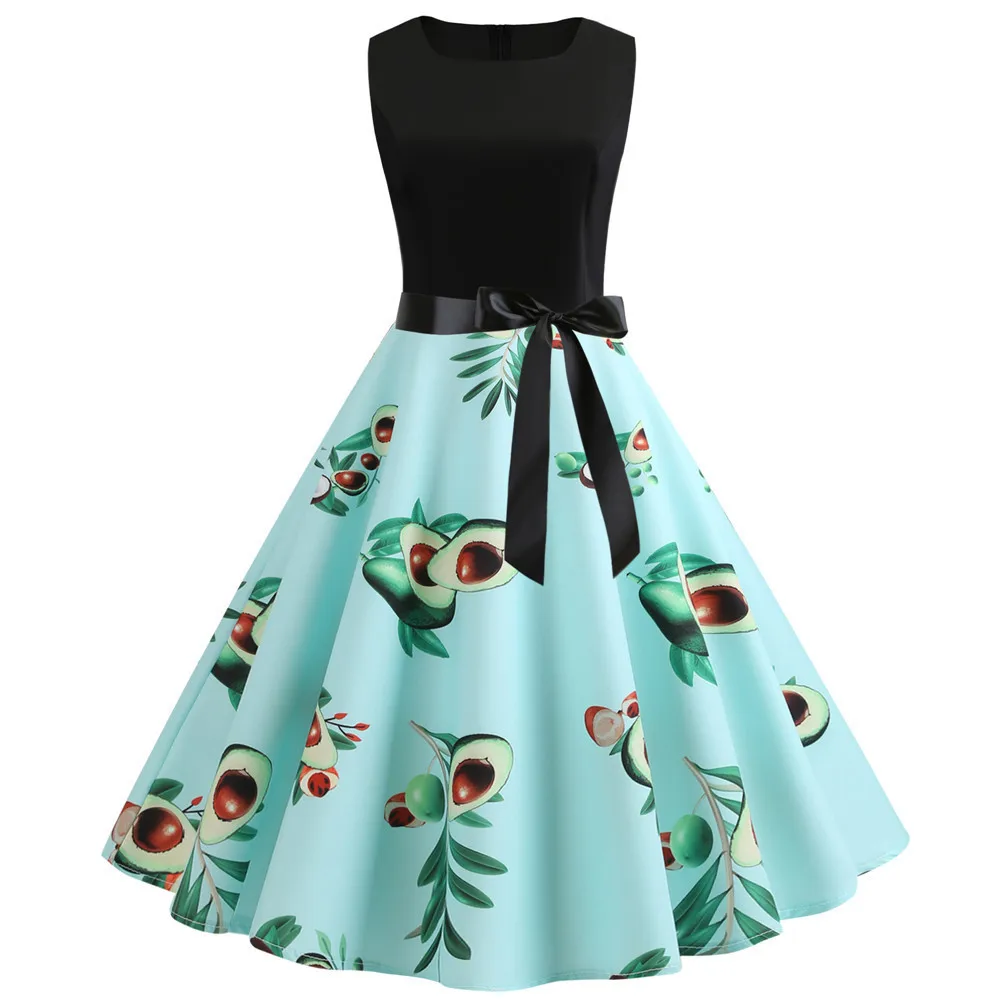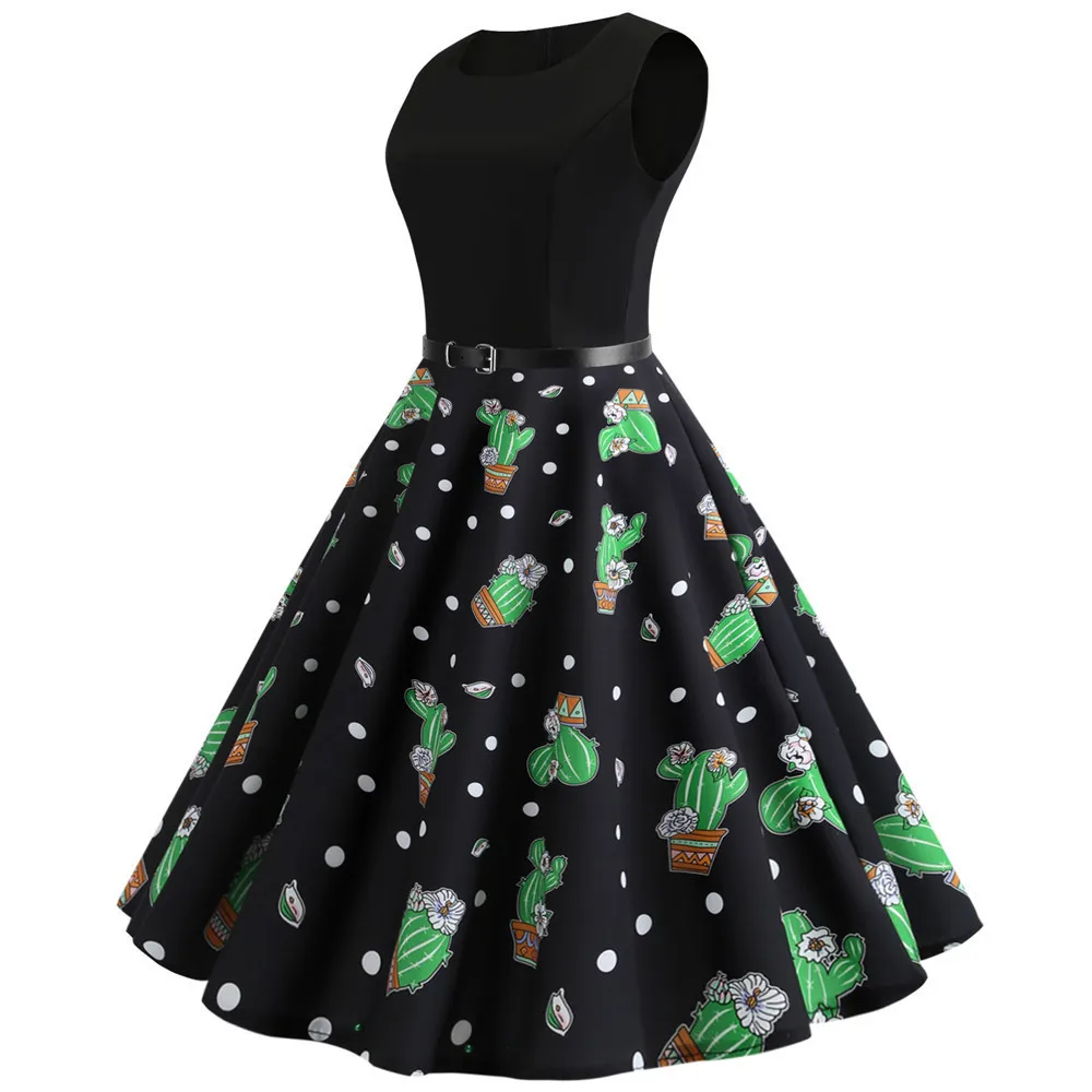 TITAME Women Vintage Dress Sleeveless Valentine Dress Big Swing Elegant Print Dress Party Dresses Women Dress Robe Plus Size