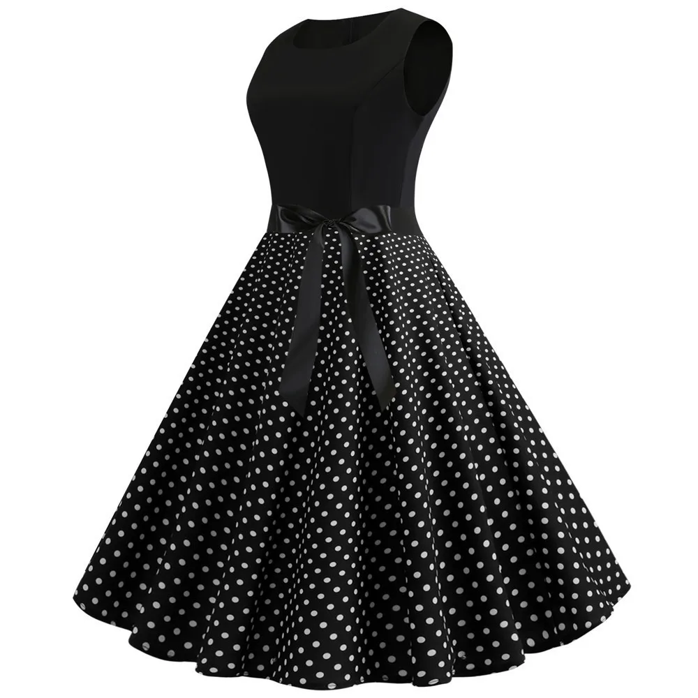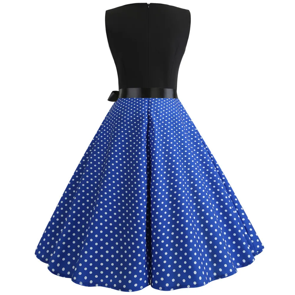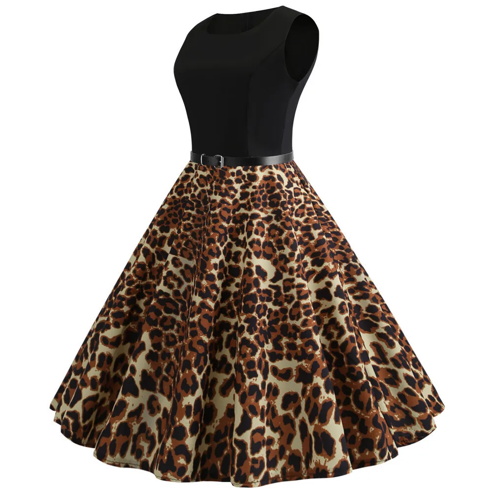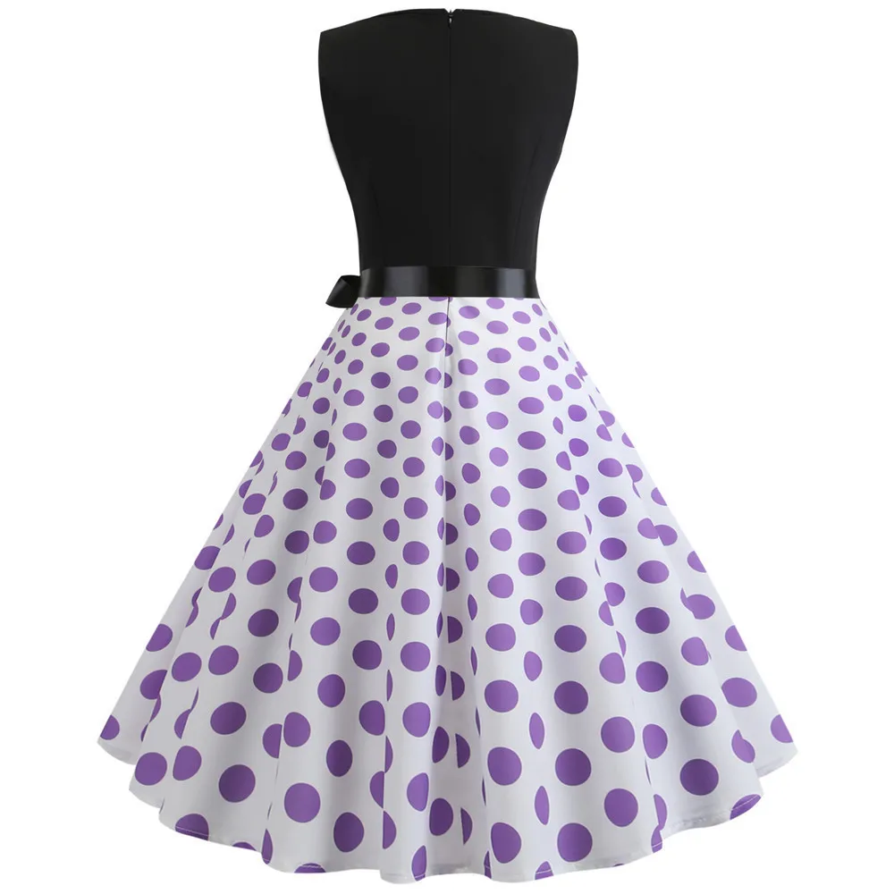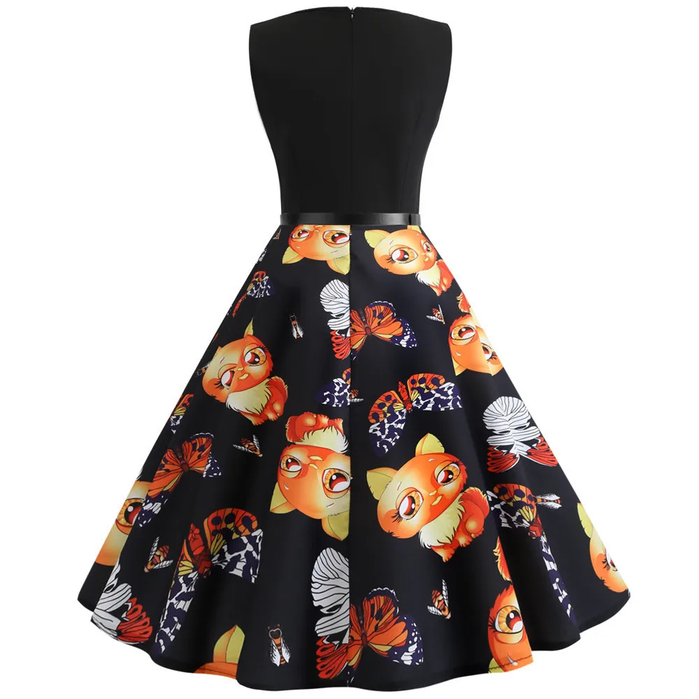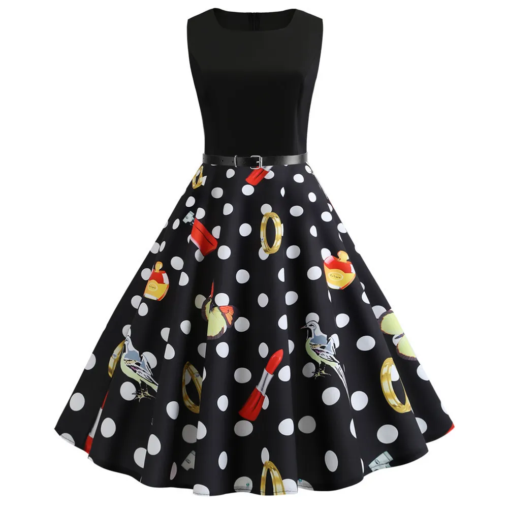 TITAME Women Vintage Dress Sleeveless Valentine Dress Big Swing Elegant Print Dress Party Dresses Women Dress Robe Plus Size