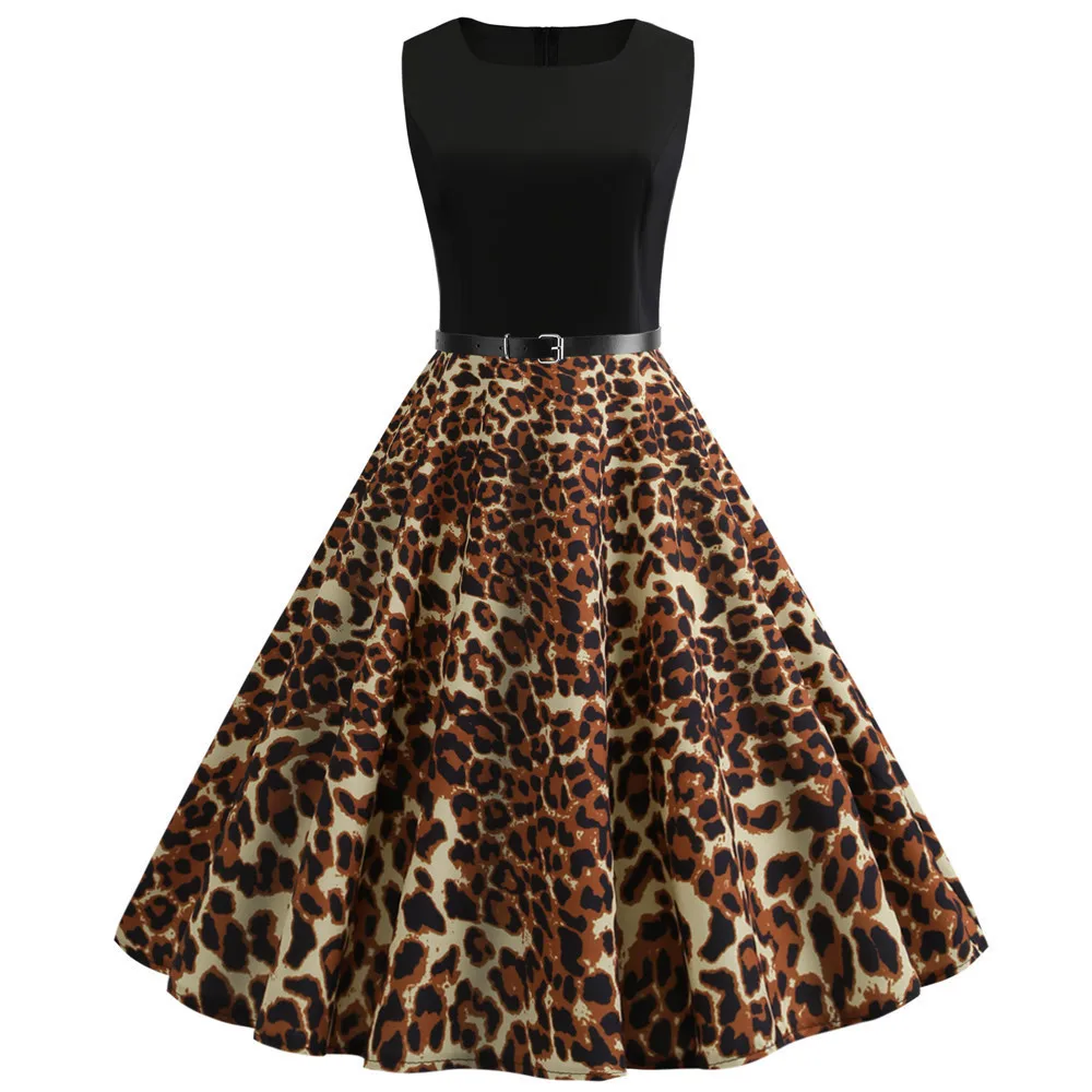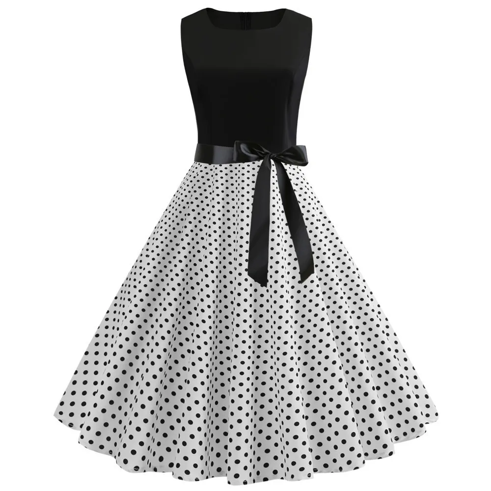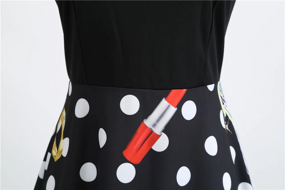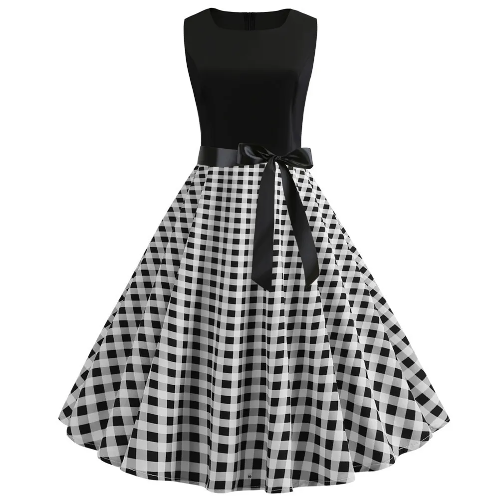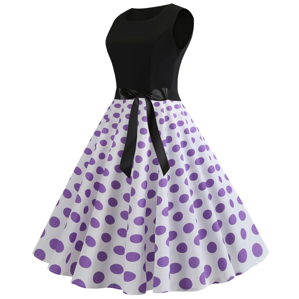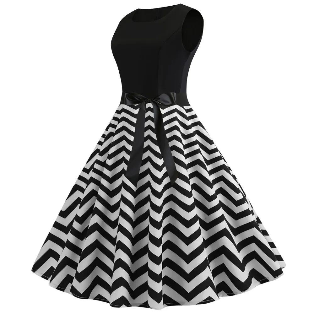 TITAME Women Vintage Dress Sleeveless Valentine Dress Big Swing Elegant Print Dress Party Dresses Women Dress Robe Plus Size