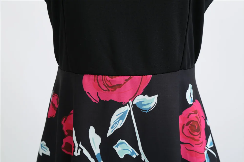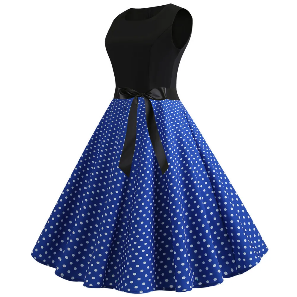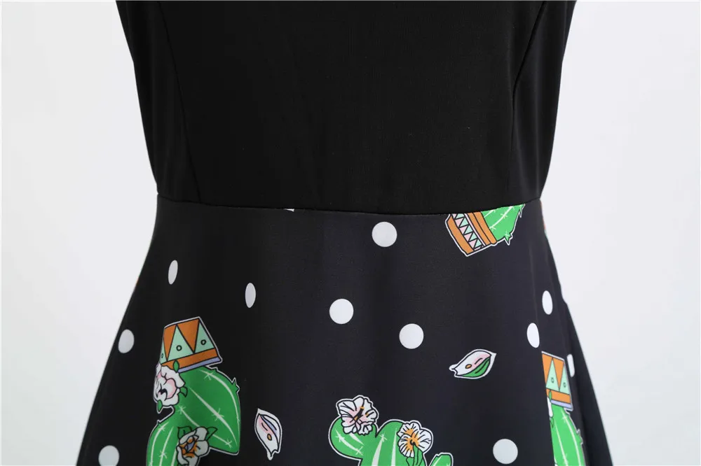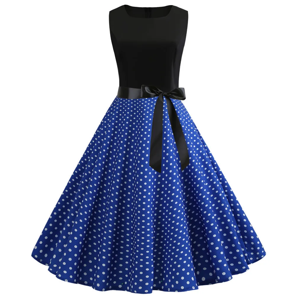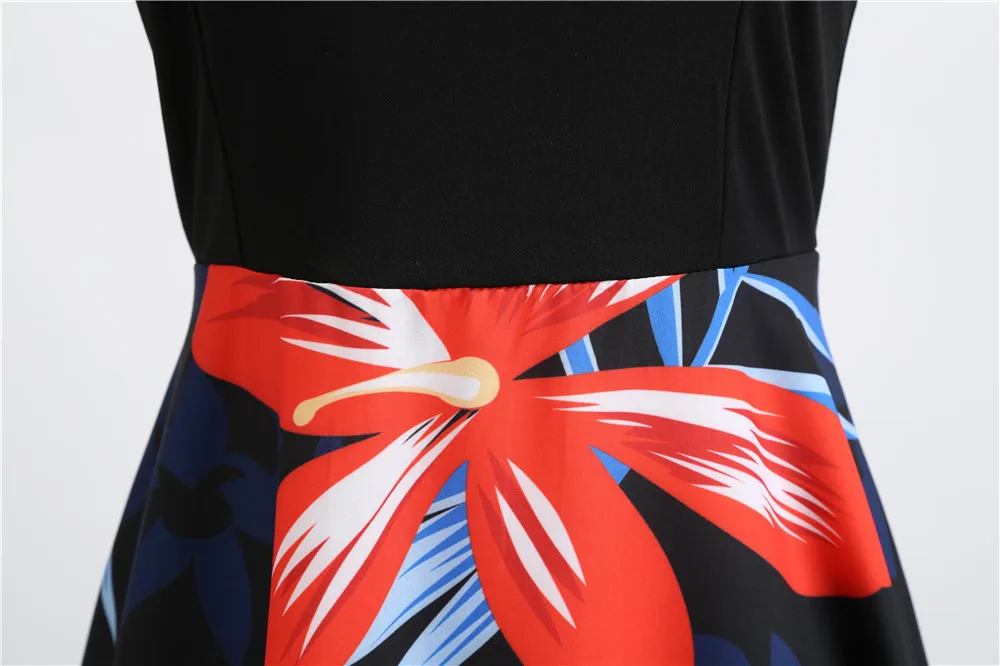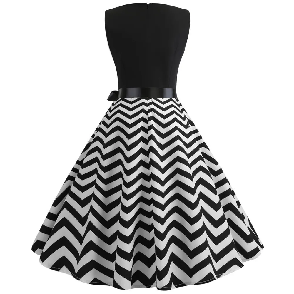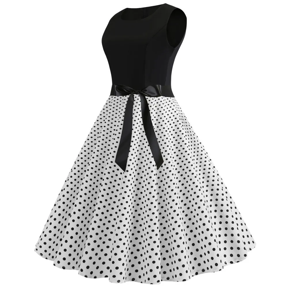 TITAME Women Vintage Dress Sleeveless Valentine Dress Big Swing Elegant Print Dress Party Dresses Women Dress Robe Plus Size