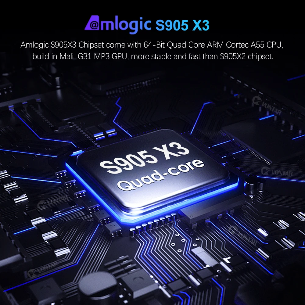 Процессор | Четырехъядерный процессор Amlogic S905X3 ARM Cortex A55 | |