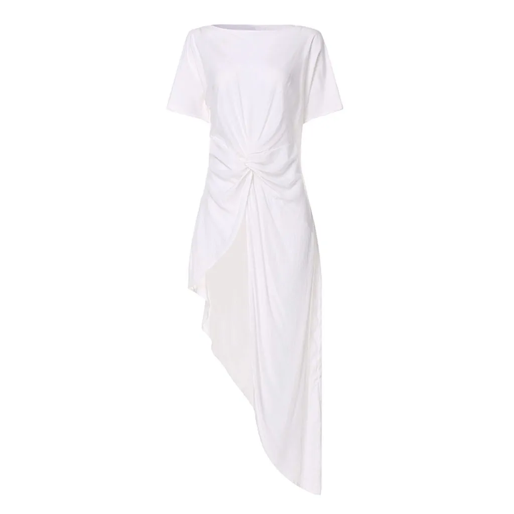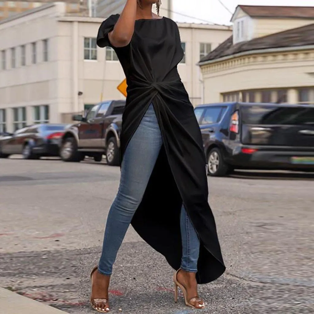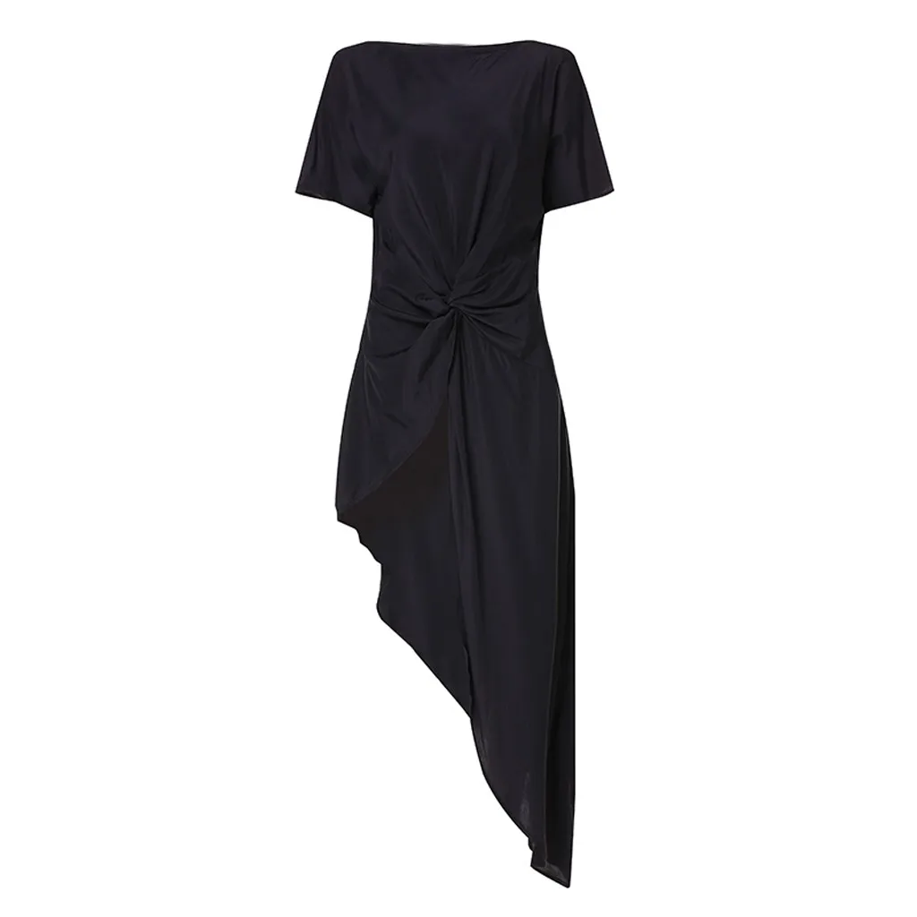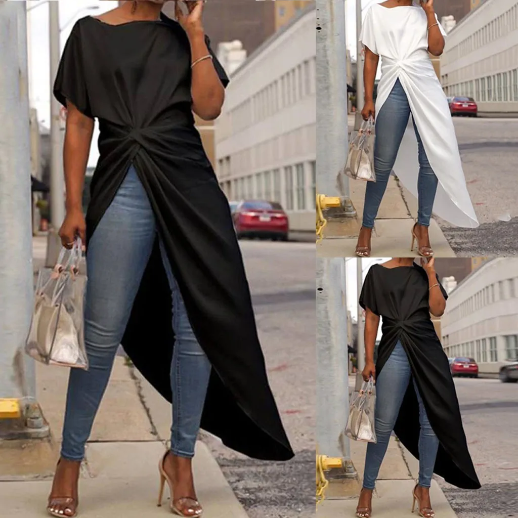 Женская Повседневная Асимметричная блузка, плиссированная рубашка с коротким рукавом, топ со шлейфом