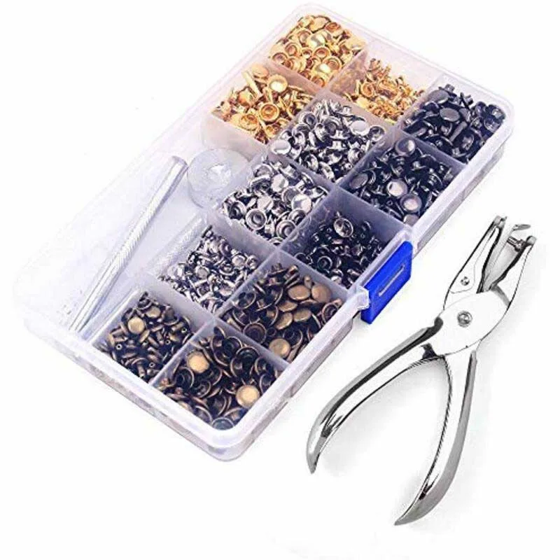 * Металлический Набор заклепок: 4 цвета: золотой, серебряный, бронзовый и черный, всего 480 наборов, поставляется с пластиковой коробкой для хранения