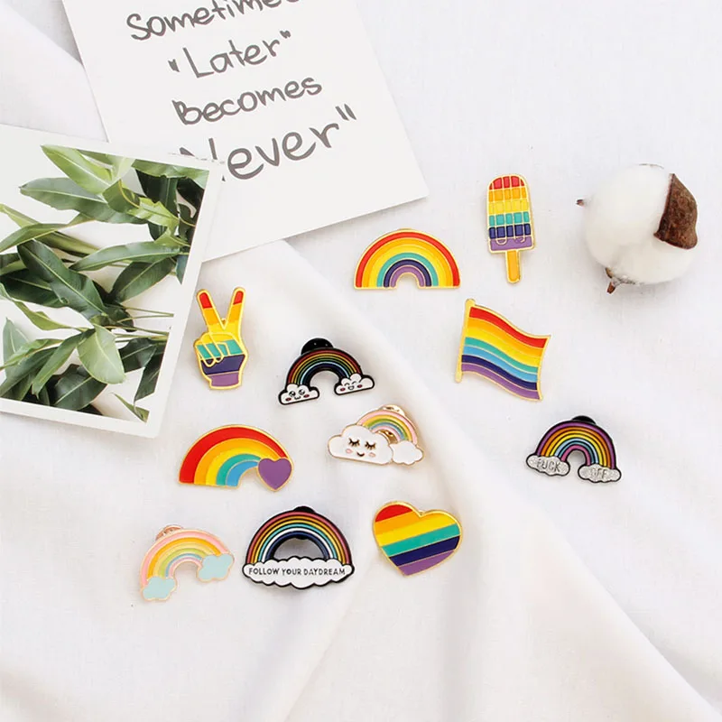 Красочные радужные булавки, броши для женщин, креативная Радужная металлическая брошь, булавки в виде облака, Джинсовая Шляпа, значок, воротник, радужные ювелирные изделия