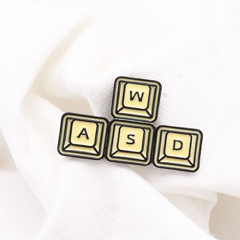 Васд клавиатура булавки Золотая компьютерная игра кнопка брошь значки джинсовые куртки блузка подарок для любителя игры