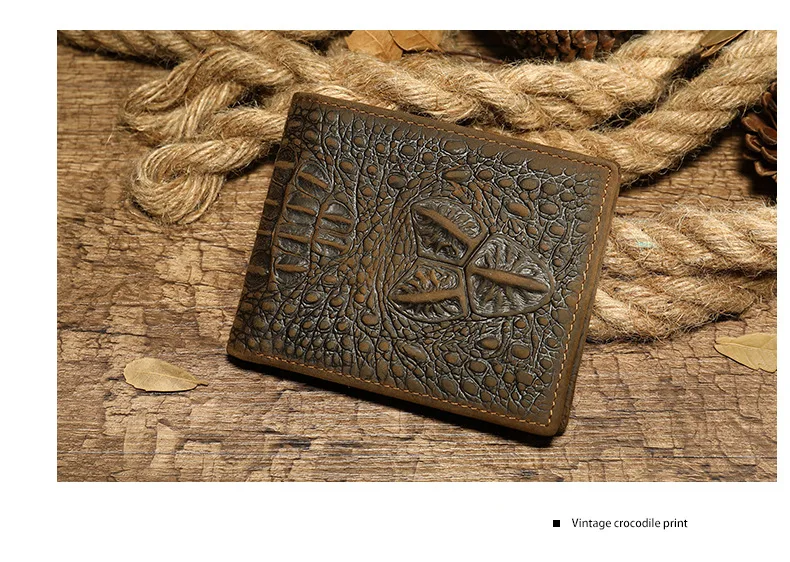 Мужской винтажный короткий кошелек из натуральной кожи с карманом в стиле ретро, держатель для кредитных карт, клатч из крокодиловой кожи аллигатора