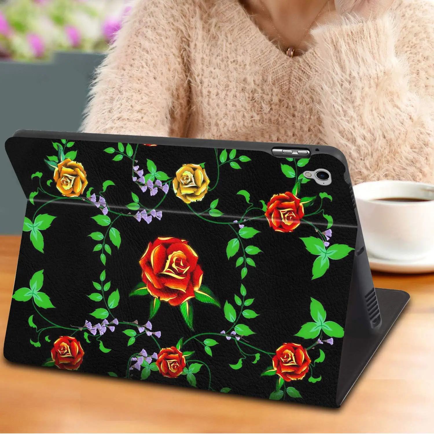 Чехол для ipad 9,7 2018/2017, Чехол для ipad Air 2, чехол для ipad Air, легкий Чехол-книжка из искусственной кожи, регулируемая подставка с функцией автоматического пробуждения/сна, умный чехол для Apple ipad 6th/5th Gen, красная желтая Роза