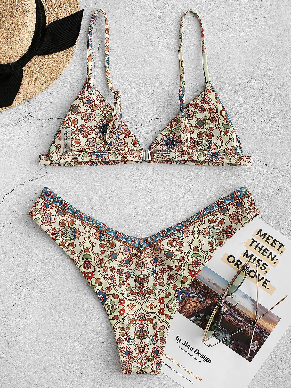 С цветочным принтом в стиле бохо, этот сексуальный комплект бикини краснеет вашу фигуру убийцы с вырезами и v-образным вырезом на талии. Верх имеет накладки и регулируемые ремни, чтобы обеспечить вам поддержку, которую вы должны хорошо выглядеть. Просто поразительный вид с этим коордом купальник!