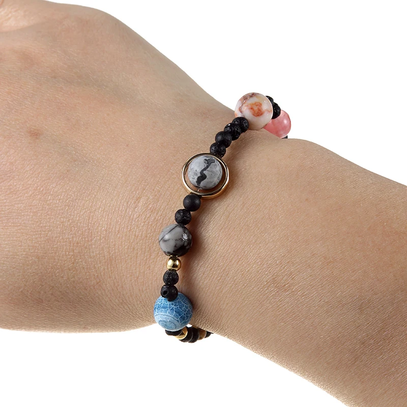 Галактика солнечная система Вселенная девять планеты натуральный камень звезды браслет с землей