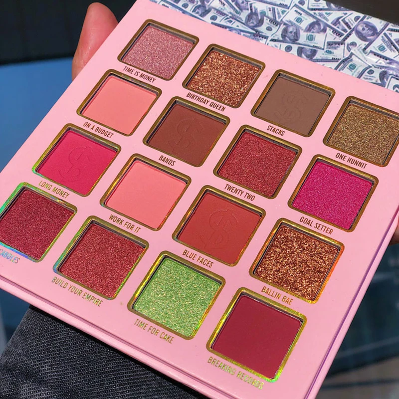 Палетка теней для век изготовлена из 16 видов цветов гладкого мерцания и пудры матовой текстуры.