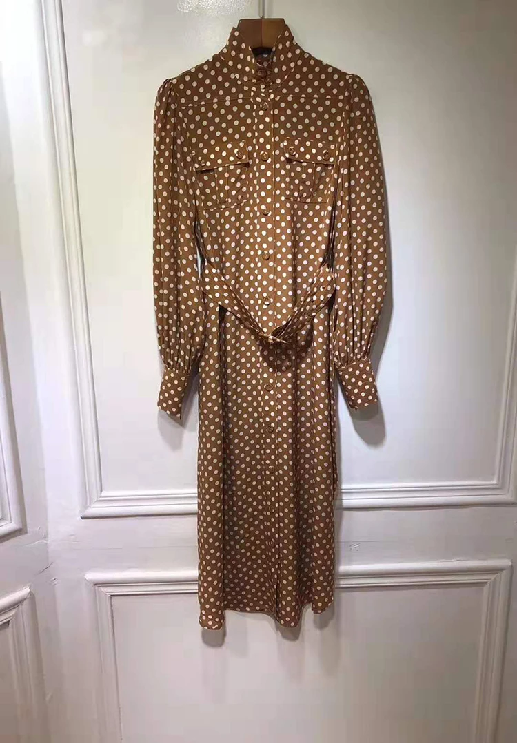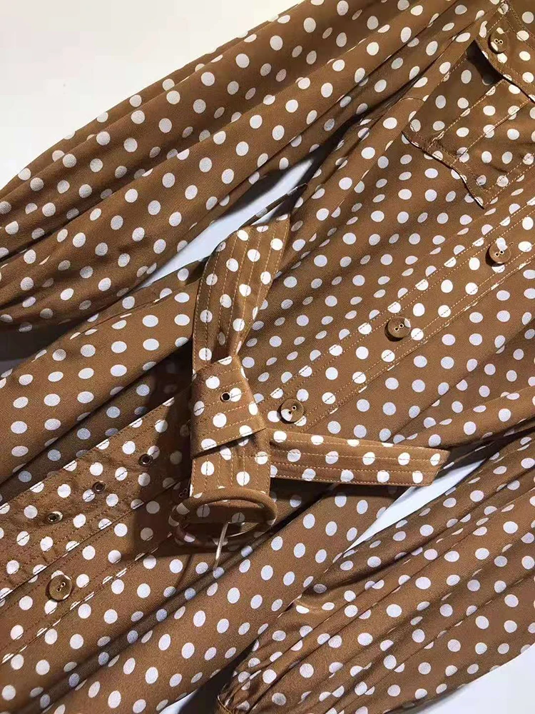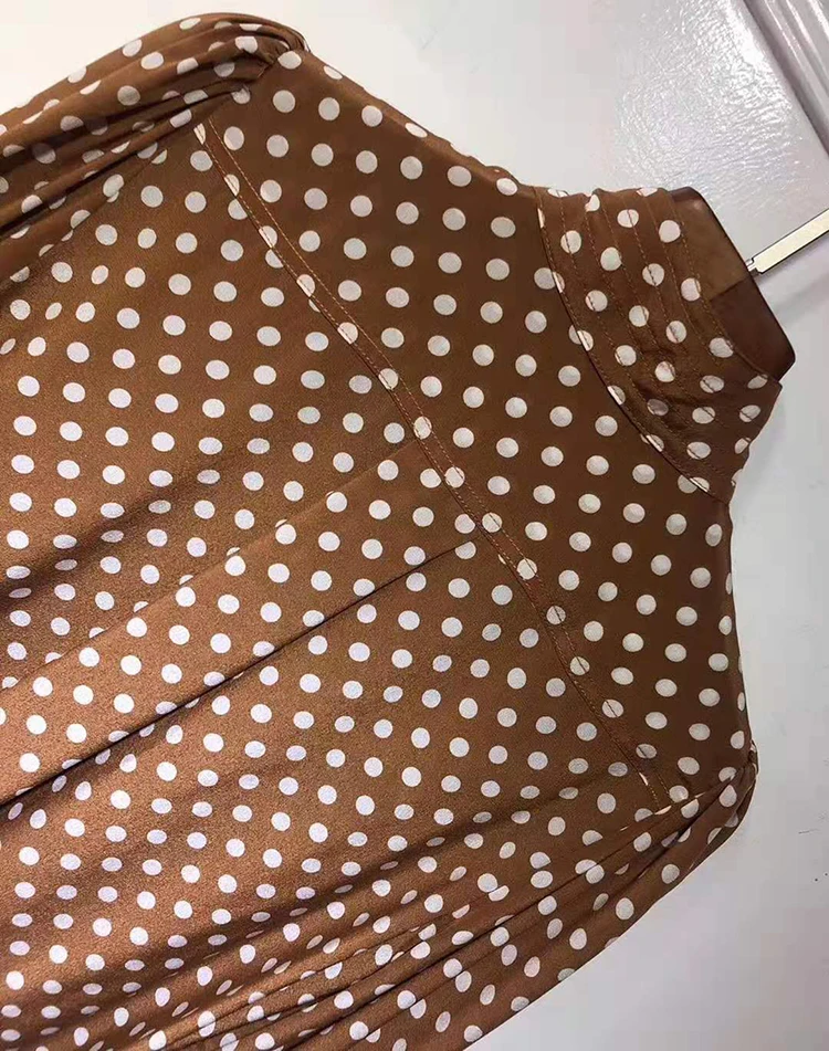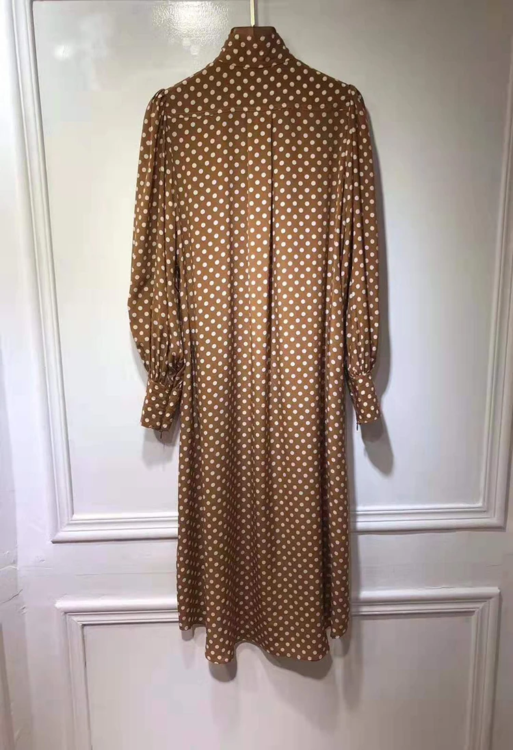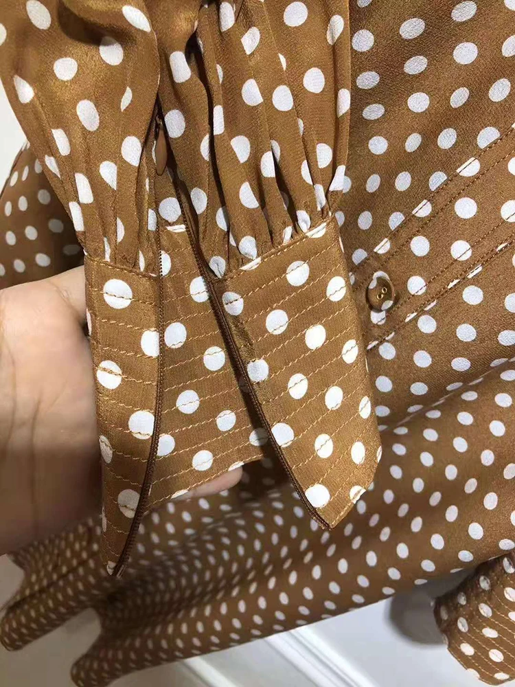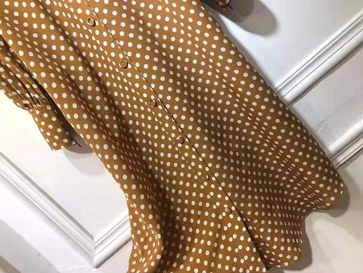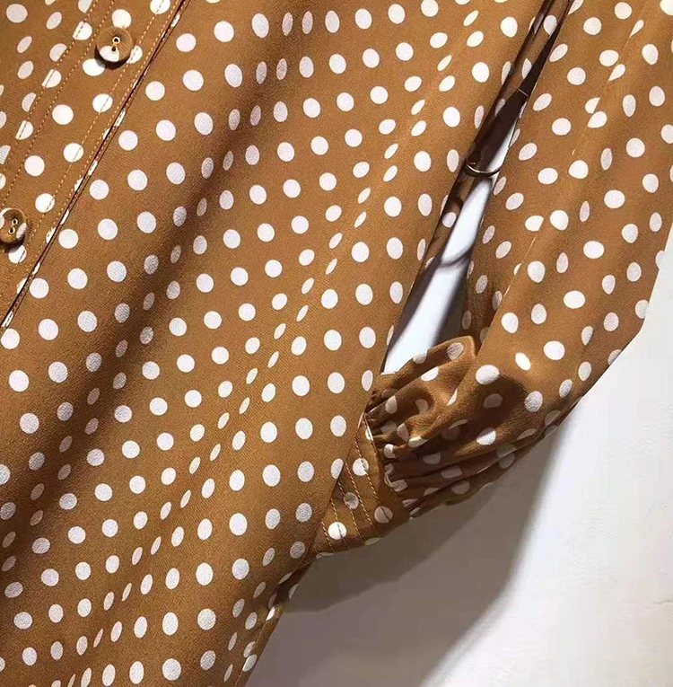 Женское прямое платье в горошек VERDEJULIAY, офисное платье из 100% шелка на молнии с рукавами-фонариками, платье средней длины в европейском стиле